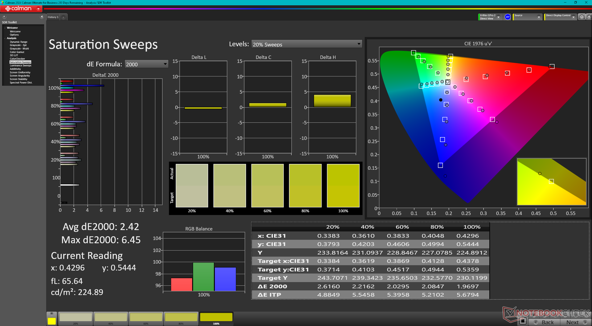 | AdobeRGB 1998 Coverage (%) | 84.7 | 86.5 2% | 96.7 14% | 97.1 15% | 92.7 9% | 42.3 -50% |