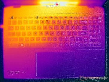 Hete plekken kunnen erg warm zijn langs de achterkant met meer dan 45 C bij zware belastingen. De gemiddelde oppervlaktetemperatuur is echter koeler dan bij het 2022 model omdat onze AMD unit geen dedicated GPU heeft. Dit is duidelijk omdat de rechterhelft van ons 2024-model veel koeler zou zijn dan de rechterhelft van het 2022-model, waar de dGPU zich zou bevinden.