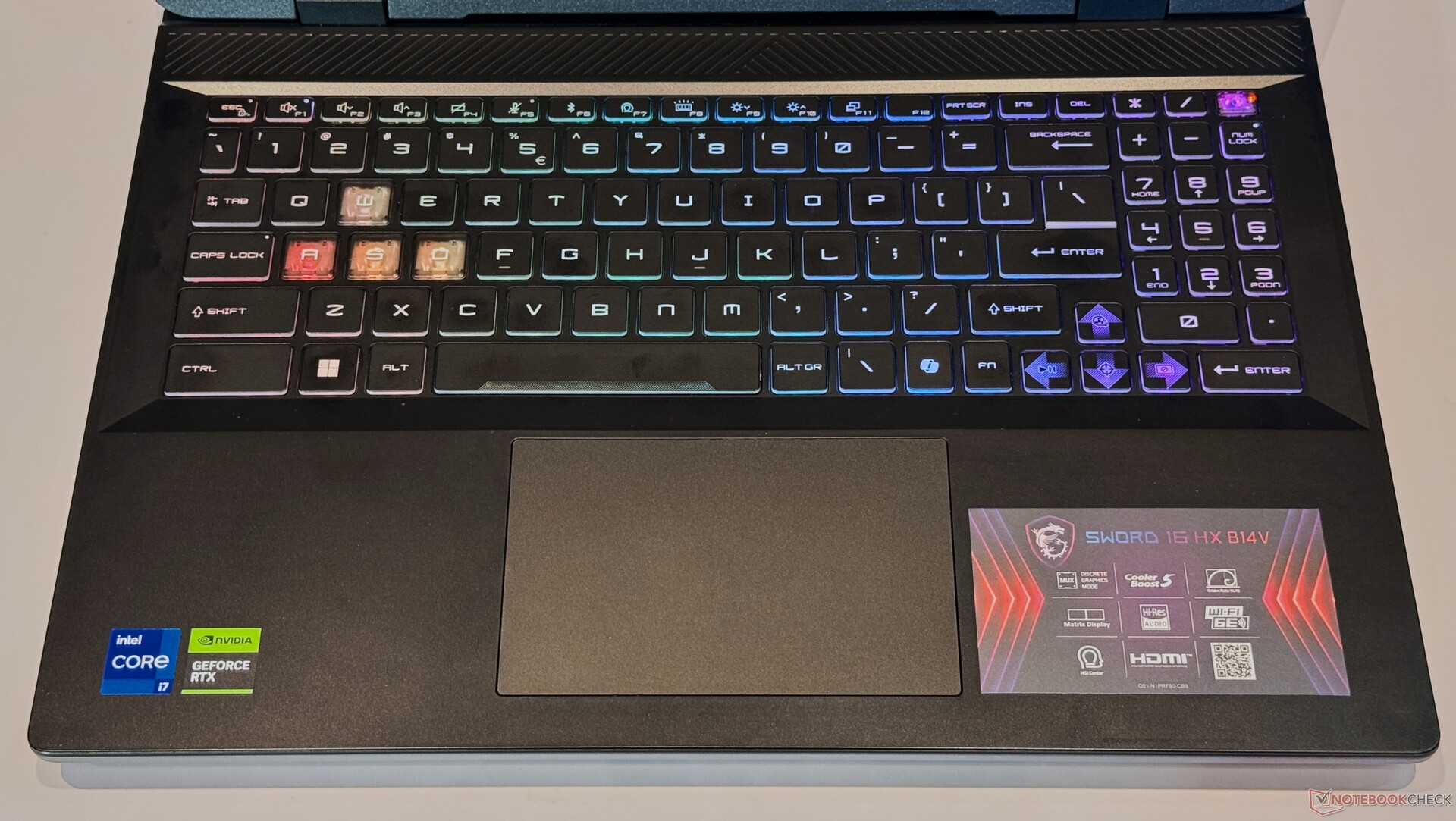 Dankzij de vormfactor van 16 inch kan MSI een volledig Numpad bij de Sword 16 leveren. De Numpad-toetsen zijn misschien een beetje klein voor mensen met grote vingers.