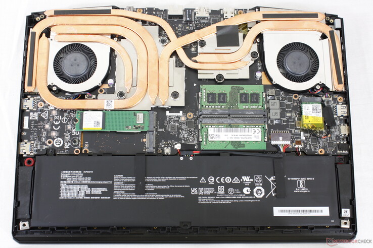 Eenmaal binnen hebben gebruikers toegang tot 2x M.2 opslagsleuven, 2x SODIMM-sleuven, de batterij en de WLAN-module, net als op het oudere Vector GP66-ontwerp.