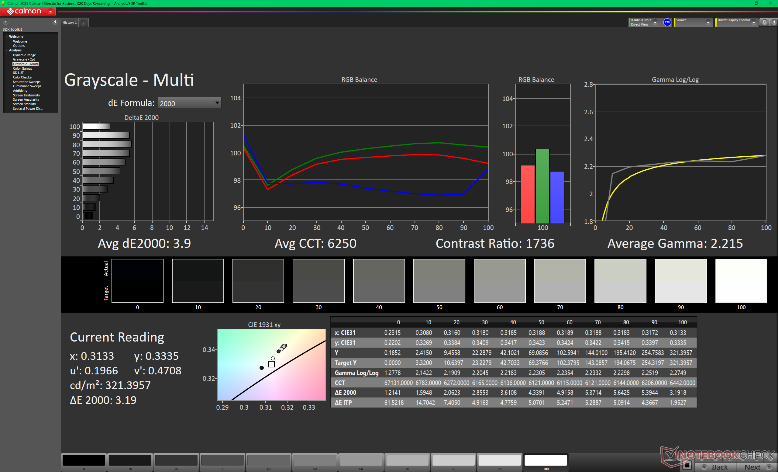 ΔE Greyscale Calman: 3.9 | ∀{0.09-98 Ø5}