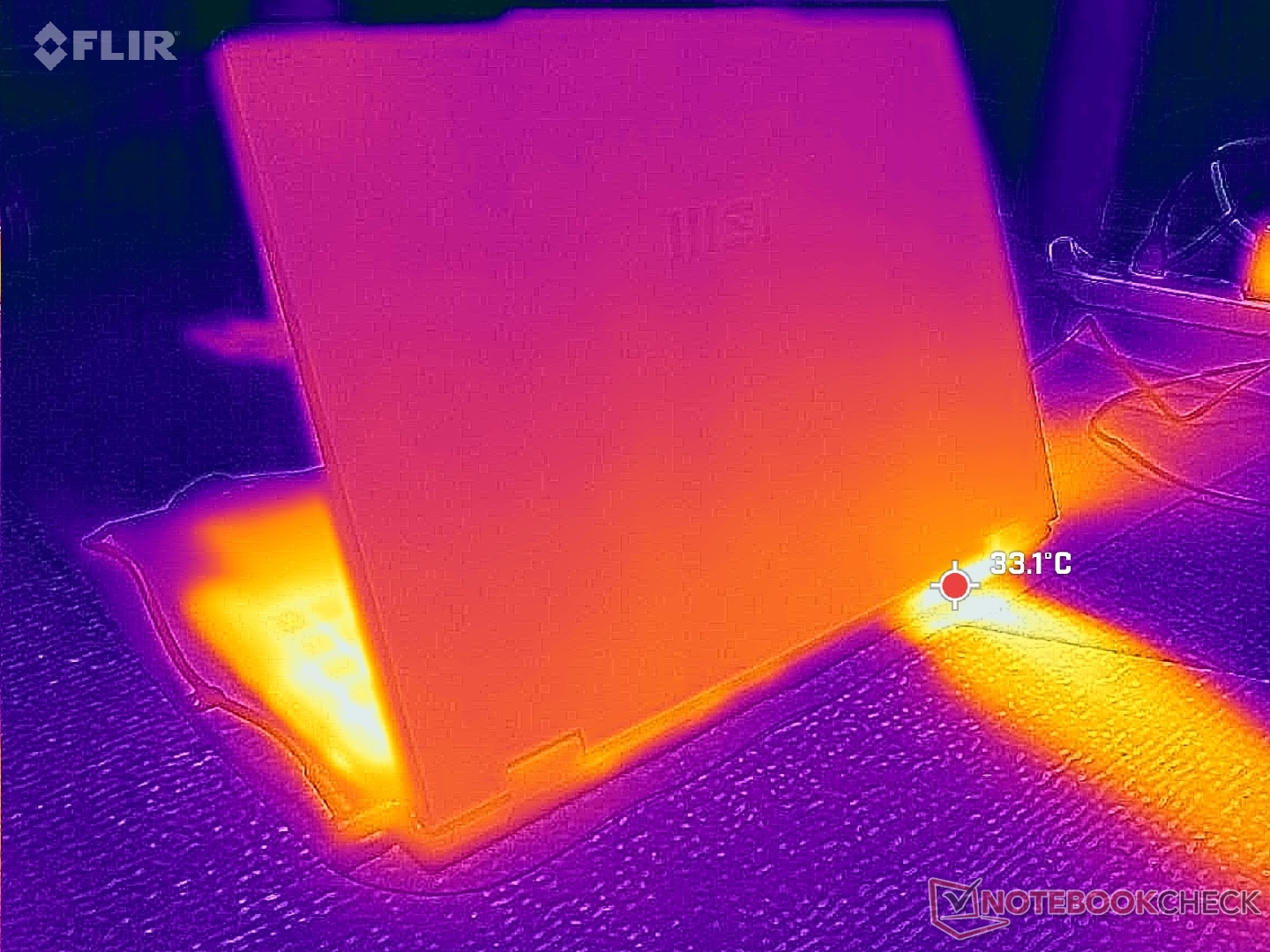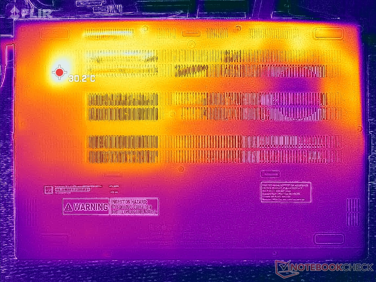 (+) Bij onbelast gebruik bedraagt de gemiddelde temperatuur voor de bovenzijde 26.8 °C / 80 F, vergeleken met het apparaatgemiddelde van 29.5 °C / 85 F.