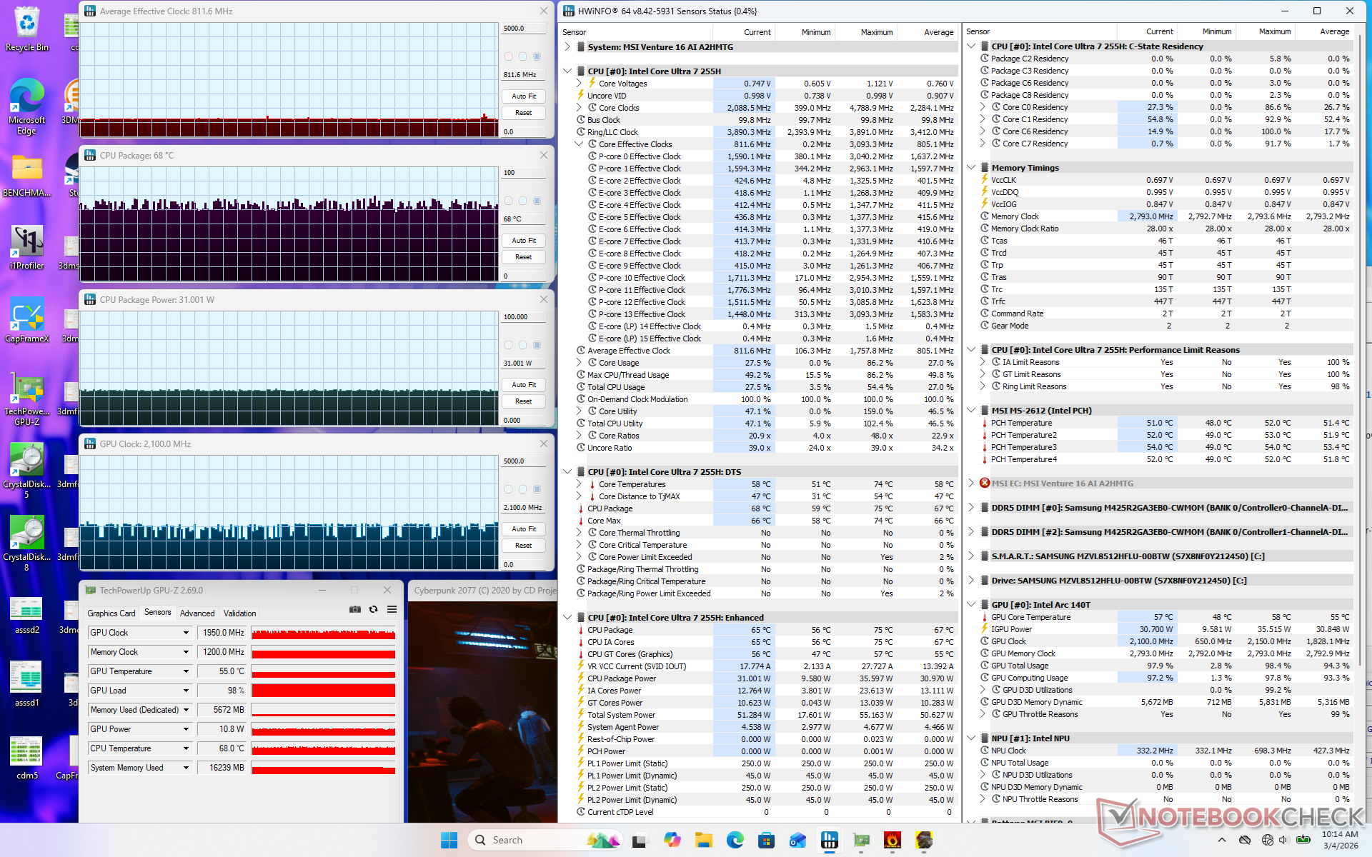 | Gemiddelde CPU-klok (GHz) | GPU-klok (MHz) | Gemiddelde CPU-temperatuur (°C) | |