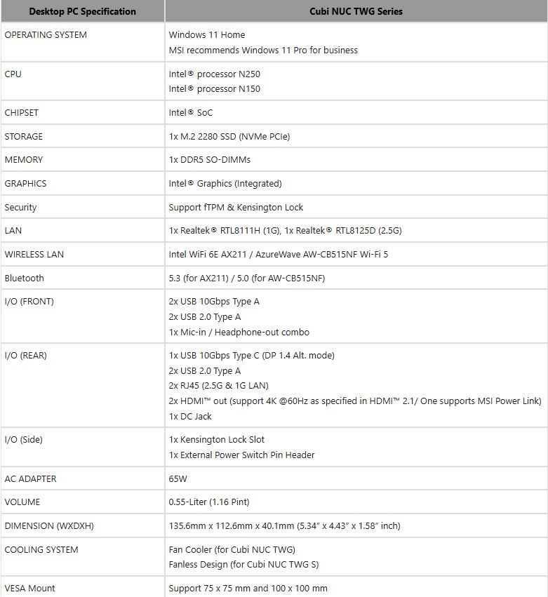 MSI heeft de Cubi NUC TWG serie geïntroduceerd, een nieuwe Intel mini PC line-up met een zakelijk georiënteerd ontwerp. Tot nu toe zijn er twee modellen aangekondigd, en één daarvan, de TWG S, heeft een ventilatorloos ontwerp.