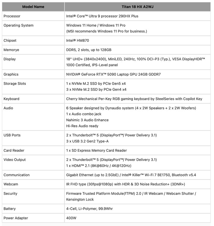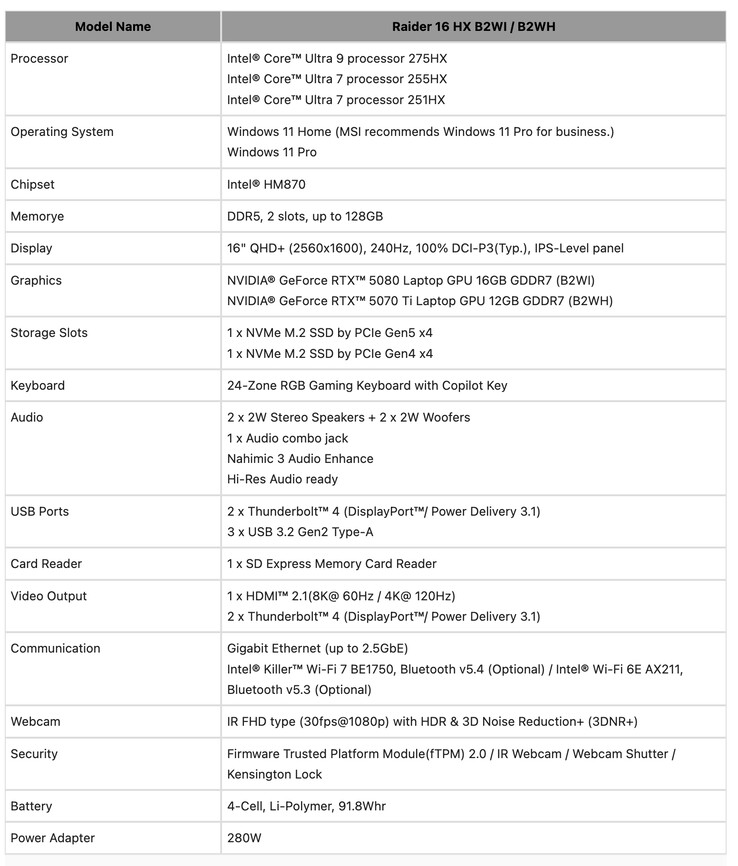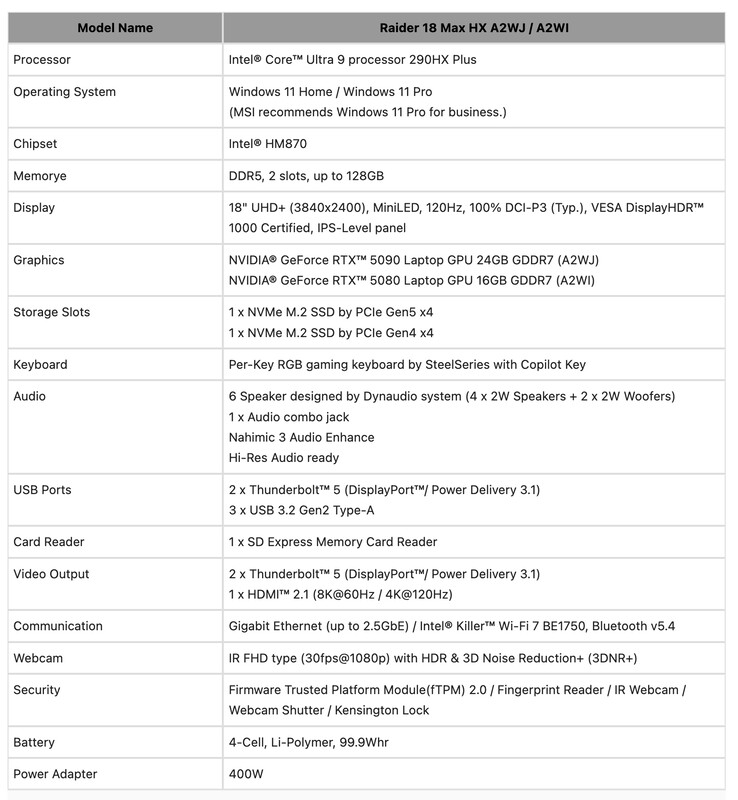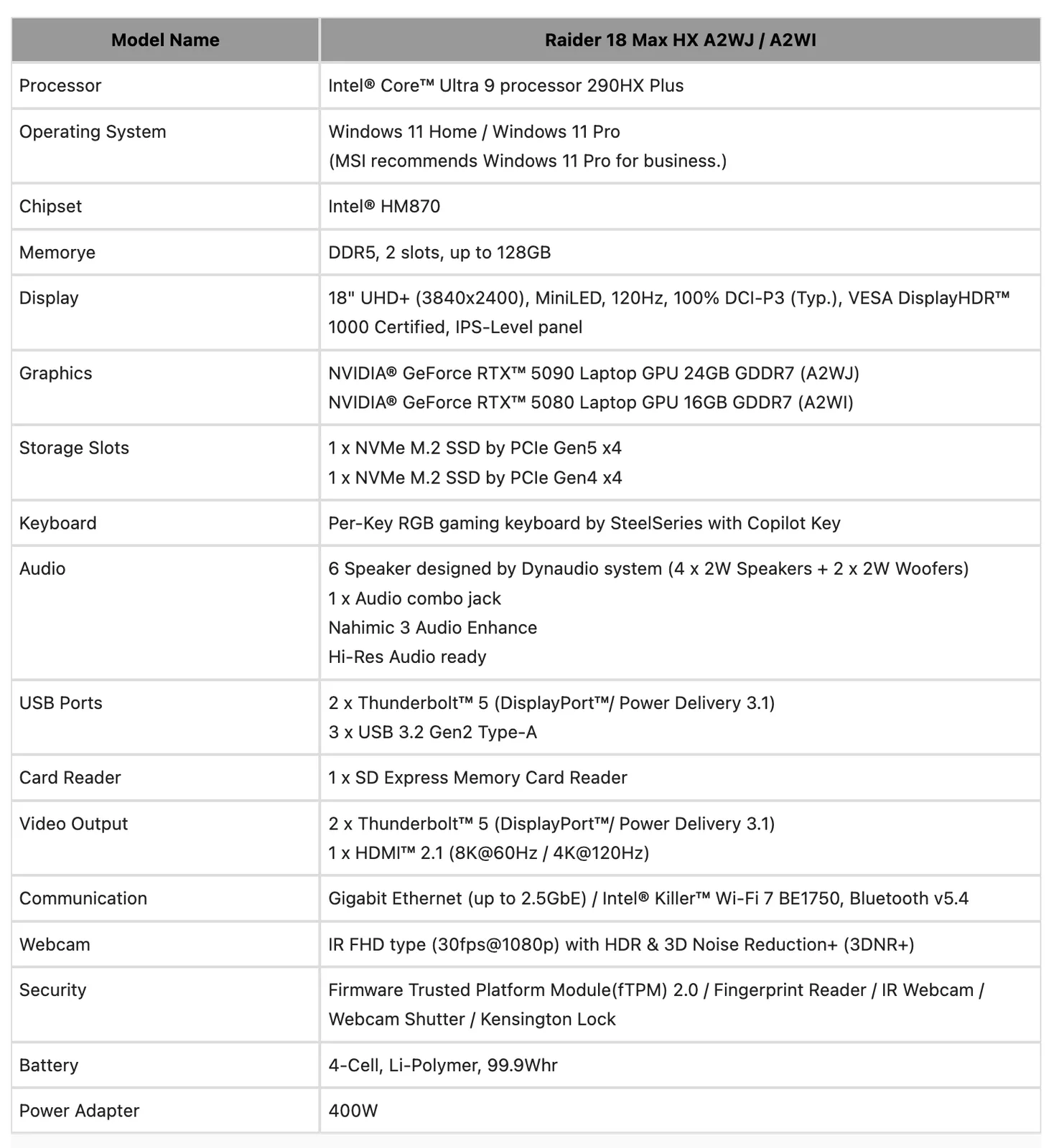 Nu is MSI ook van de partij met acht nieuwe laptops in de Raider- en Stealth Titan-series. Specifiek heeft het bedrijf de volgende laptops gepresenteerd, ondersteund door Core Ultra 9 290HX Plus processoren: