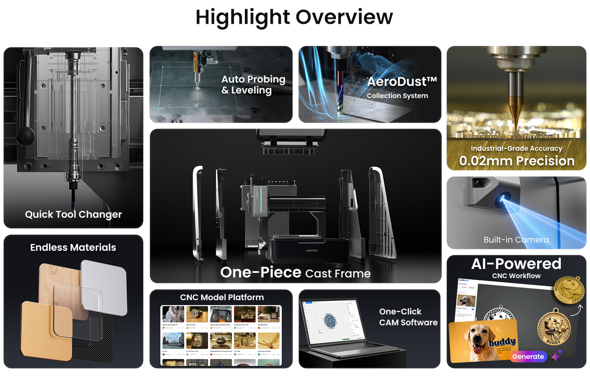 De Z1 zal ook verkrijgbaar zijn met een optionele 4e-assige kit en 5 W module, beide dezelfde systemen die gebruikt worden in de Carvera Air en de volwaardige Carvera CNC, zodat toekomstige makers kunnen investeren in upgrades voor hun machines om de mogelijkheden uit te breiden. Ook is de Z1 compatibel met de bijgewerkte interne Makera CAM-software, die nu blijkbaar Makera Studio wordt, en kan de machine worden bestuurd via de Makera App (voorheen Makera Controller) die op Windows, Linux, macOS, iOS of Android draait.