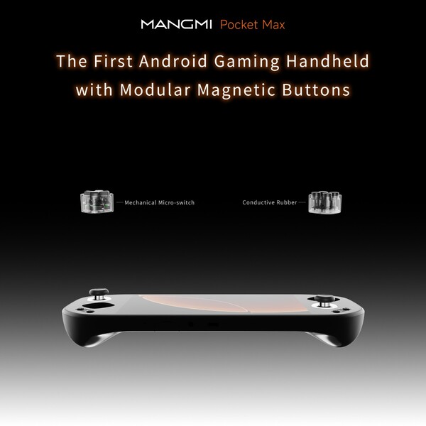 Mangmi heeft in een bericht op zijn sociale mediakanalen onthuld dat de Pocket Max modulaire magnetische knoppen zal hebben. In de bijgevoegde afbeelding is de Mangmi Pocket Max te zien met de D-Pad en ABXY-knoppen verwijderd. Met dit ontwerp kunnen gebruikers beide knoppen omwisselen voor een ander type, zoals een andere indeling van de ABXY-knoppen of een touchpad in plaats van een D-Pad.