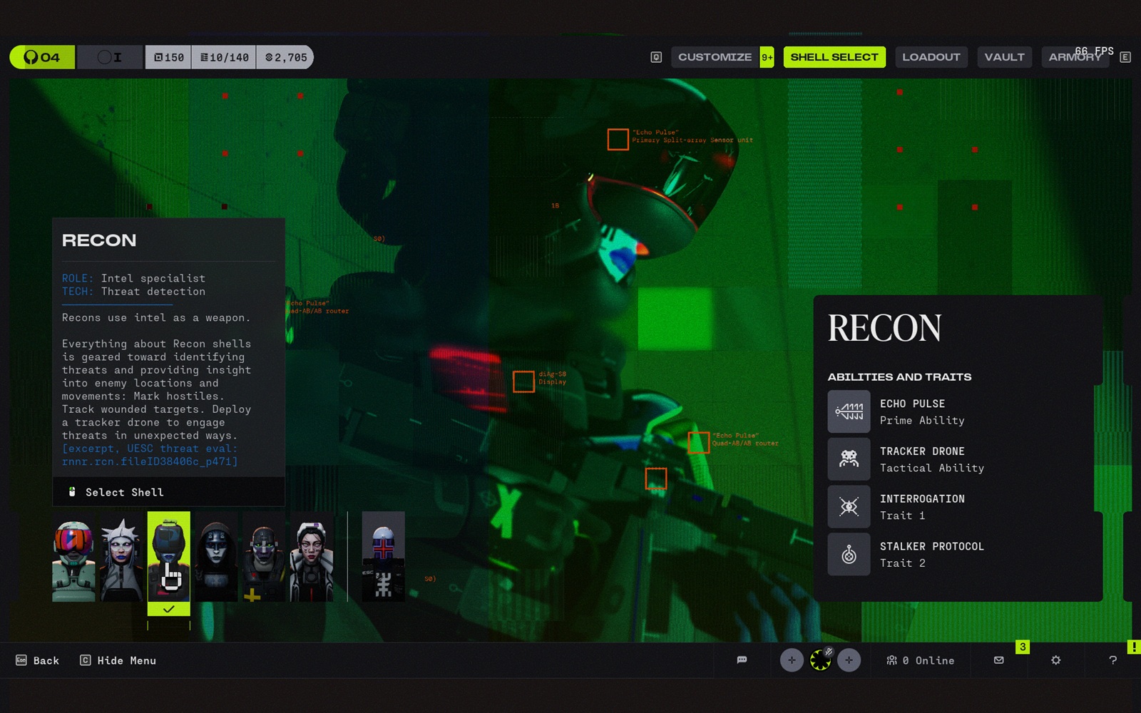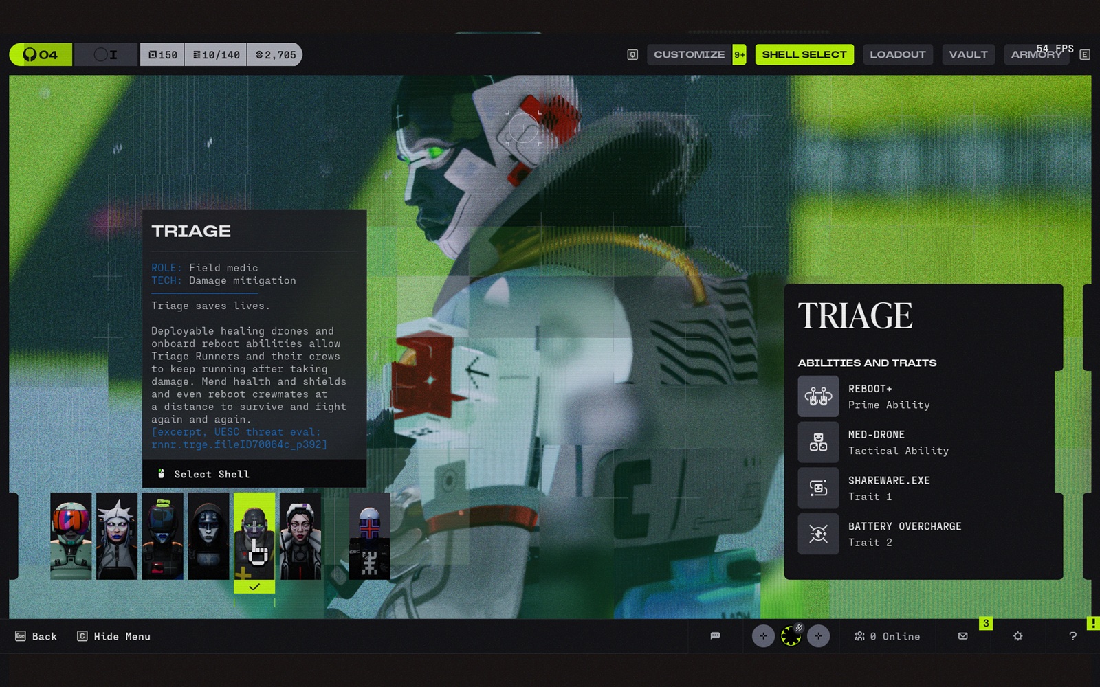 Een van de eerste tekenen is dat Marathon de shells behandelt als echte gameplay-archetypes in plaats van cosmetische omhulsels. Het shell-rooster bevat Thief, Destroyer, Vandal, Assassin, Recon en Triage, waarbij elke shell is opgebouwd rond zijn eigen vaardigheden en eigenschappen. In de praktijk geeft dit het spel een onmiddellijke klassenstructuur die gericht is op stealth, verstoring, ondersteuning, verkenning, mobiliteit en directe agressie.