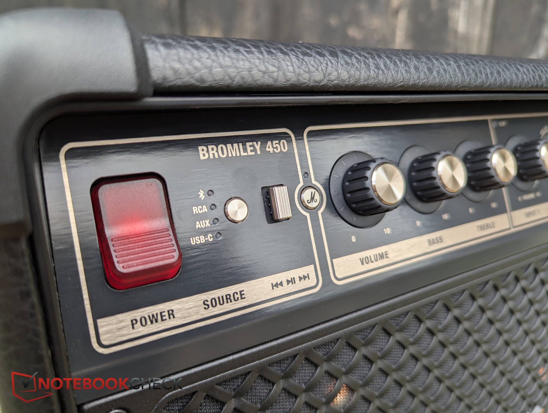 Iedereen die bekend is met de grotere Bromley 750 zal een dubbele blik werpen - de 450 ziet er bijna identiek uit, alleen verkleind. Dat betekent een kenmerkende Marshall styling in plaats van algemene, flitsende ontwerpen. In de praktijk vertaalt zich dat in eersteklas PU-leder dat oppervlakken bedekt die normaal gesproken kaal plastic zijn, een opvallende metalen grille aan de voorkant en koperen knoppen en draaiknoppen langs het bovenpaneel. Er is ook een aanpasbare "M"-knop, die via de app kan worden toegewezen.