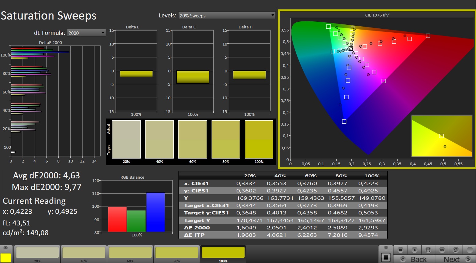 ΔE ColorChecker Calman: 4.57 | ∀{0.5-29.43 Ø4.76}