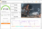 De stresstest (Prime95 en Furmark in continu bedrijf) vormt een extreem scenario voor het testen van de systeemstabiliteit onder volledige belasting. De CPU begint de test op hoge kloksnelheden (P: 4 GHz, E: 3,3 GHz), terwijl de GPU opstart op 1,5 tot 2 GHz. Binnen de eerste 5 minuten daalt de CPU-klok geleidelijk tot 2 à 2,4 GHz (P-kernen) en 1,9 à 2,1 GHz (E-kernen). Tegelijkertijd stijgt de GPU-klok naar 2,3 tot 2,4 GHz.
