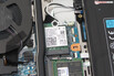 Na het verwijderen van alle schroeven aan de onderkant van het apparaat, kan de onderschaal worden losgemaakt met een platte spatel of een voegmachine. U hebt dan toegang tot de twee RAM-slots (beide bezet), de twee SSD's (PCIe 4, M.2-2280), de WLAN-module, de ventilatoren, de BIOS-batterij en de batterij van de laptop.