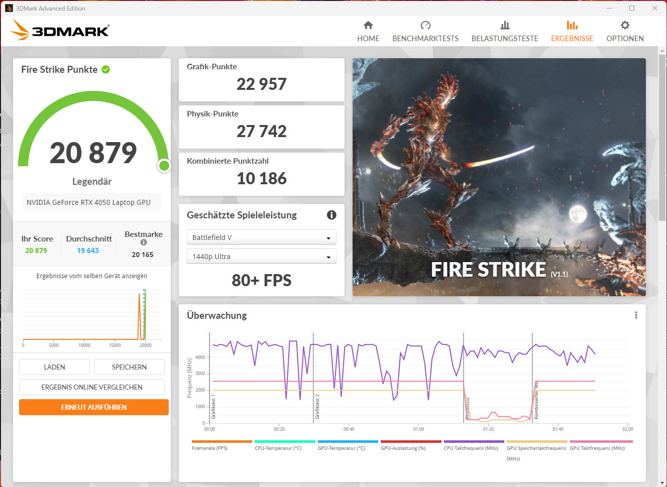 | Medion Erazer Scout E20 i7-13700H, GeForce RTX 4050 Laptop GPU | Gigabyte G7 KE i5-12500H, GeForce RTX 3060 Laptop GPU | MSI Katana 17 B13VFK i7-13620H, GeForce RTX 4060 Laptop GPU | Asus TUF Gaming A16 FA617 R7 7735HS, Radeon RX 7600S | Lenovo Legion 5 15IAH7H 82RB i7-12700H, GeForce RTX 3060 Laptop GPU | Acer Nitro 5 AN515-46-R1A1 R7 6800H, GeForce RTX 3070 Ti Laptop GPU | Gemiddeld NVIDIA GeForce RTX 4050 Laptop GPU | Gemiddelde van klas Gaming | |