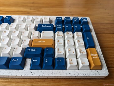 Uit de doos is het Modern97 toetsenbord met 1,0 kg zwaar voor zijn grootte, wat bijdraagt aan de solide bouwkwaliteit en stevige type-ervaring. Het ABS plastic met inktstippen aan de bovenkant en de matte transparante behuizing met schroefdraad aan de onderkant geven het ontwerp veel karakter dat gebruikers zouden kunnen waarderen. Er is een tweede variant beschikbaar met donkerdere en grijzere tinten die contrasteren met de heldere en blauwere kleuren van ons testtoestel.