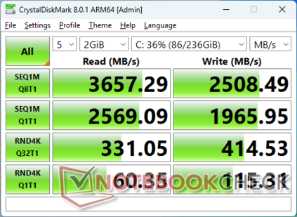 | Microsoft Surface Laptop 15 Snapdragon X Elite Adreno X1-85 3.8 TFLOPS, SD X Elite X1E-80-100, Samsung PM9B1 256GB MZ9L4256HCJQ | Microsoft Surface Laptop 5 15, i7-1255U Iris Xe G7 96EUs, i7-1255U, SK Hynix BC711 512GB HFM512GD3GX013N | Lenovo Yoga Slim 7 15ILL9 Aura Arc 140V, Core Ultra 7 256V | Lenovo ThinkBook 16 G7+ AMD Radeon 880M, Ryzen AI 9 365, Samsung PM9C1a MZAL81T0HDLB | Dell XPS 15 9530 RTX 4070 GeForce RTX 4070 Laptop GPU, i7-13700H, SK hynix PC801 HFS001TEJ9X101N | Asus Vivobook S 15 OLED Snapdragon Adreno X1-85 3.8 TFLOPS, SD X Elite X1E-78-100, Micron 2400 MTFDKBA1T0QFM | |