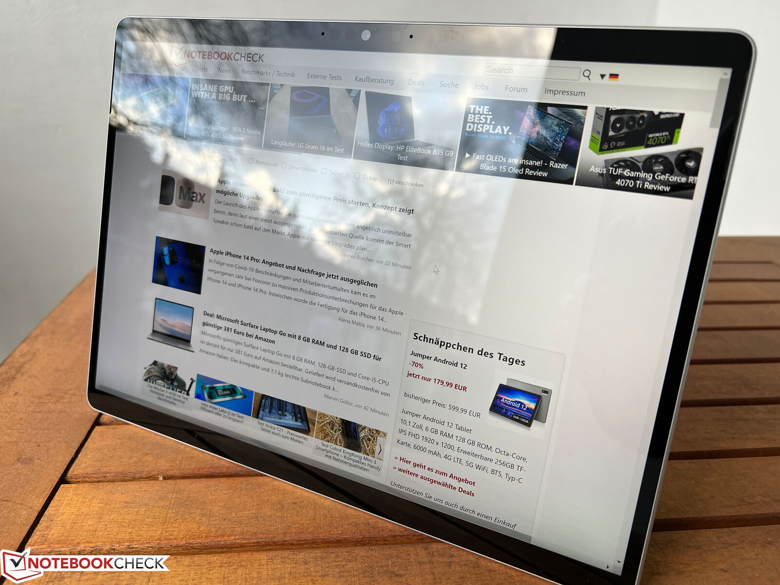 Er is niets veranderd aan de fundamentele kenmerken van het scherm, dat een IPS-touchscreen in 3:2-formaat blijft, een resolutie van 2880 x 1920 (267 PPI) en een verversingssnelheid tot 120 Hz biedt. 60 Hz is vooraf ingesteld als de standaardsnelheid, dus 120 Hz moet handmatig worden geselecteerd in de instellingen. Onze subjectieve indruk van het glanzende scherm is nog steeds erg goed. Dankzij sensoren worden de helderheid en kleurtemperatuur automatisch aangepast en ook dit werkt goed.