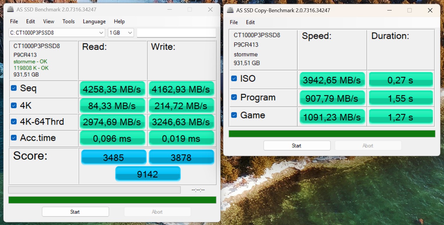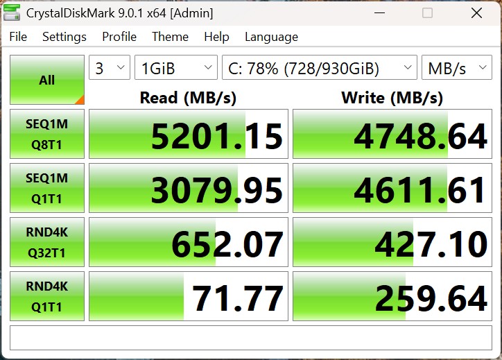 | Connectivity - USB 3.x / USB4 / TB - AS SSD Seq Read Test (1GB) | |