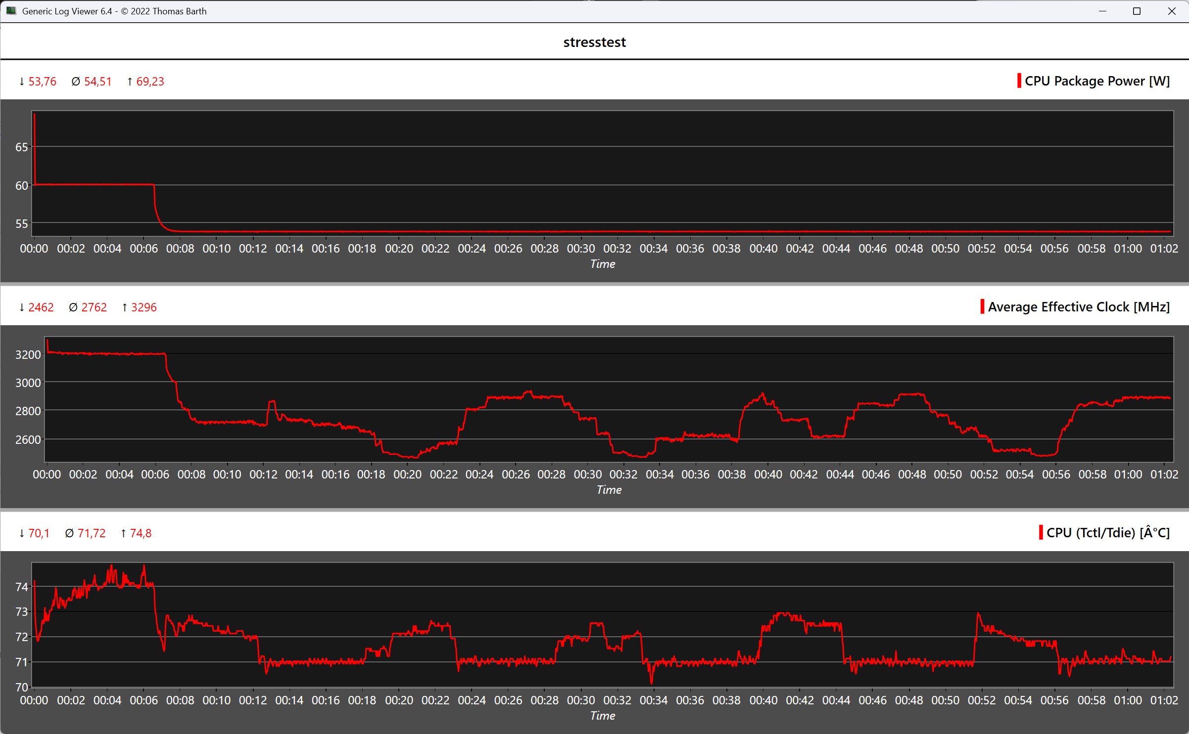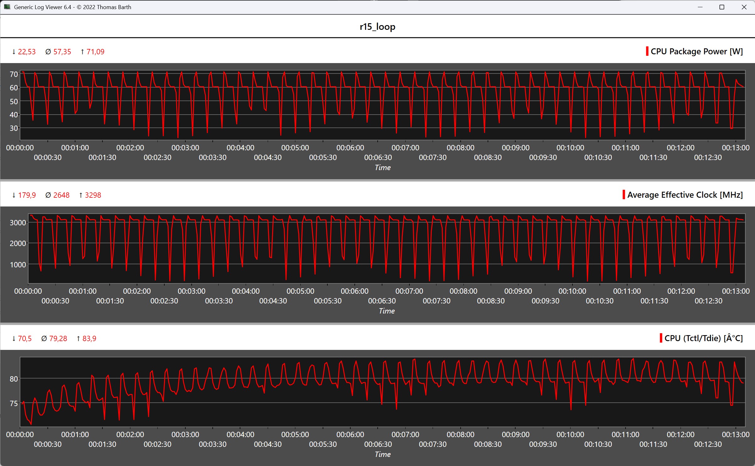 De Peladn HO5 blijft thermisch onopvallend en werkt in onkritische temperatuurbereiken, zowel in ruststand als onder belasting. De onderkant warmt iets meer op door het ontwerp. We hebben een maximum van 74,8 °C gemeten in de stresstest en iets minder dan 84 °C in de Cinebench R15 multi-loop gedurende een korte tijd.