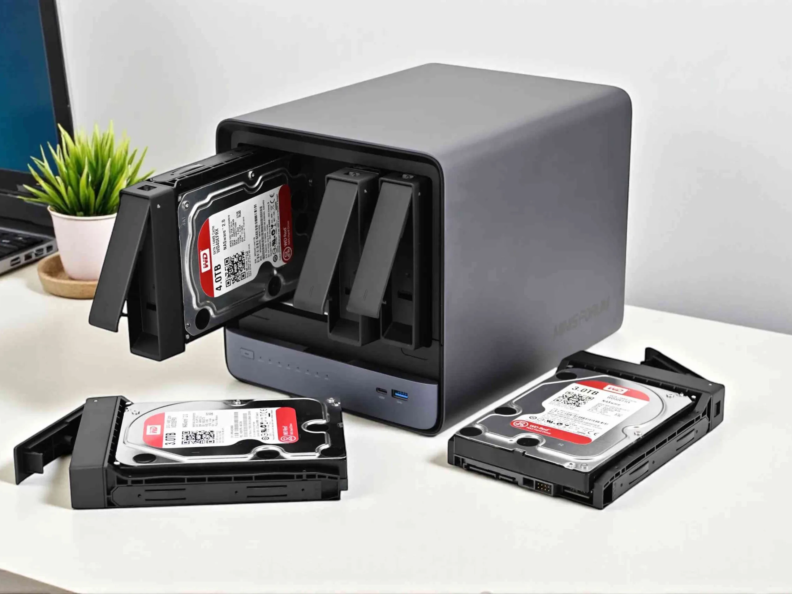 Er is een PCIe-sleuf met vier PCIe 4.0-sleuven beschikbaar, zodat extra netwerkkaarten achteraf kunnen worden aangebracht. Een Ethernetpoort met een maximale gegevensoverdrachtsnelheid van 10 en 5 GBit/s is aan boord voor netwerkconnectiviteit. Er kunnen maximaal vijf SSD's of klassieke magnetische harde schijven in 3,5 en 2,5 inch formaat worden geïnstalleerd om grote hoeveelheden gegevens op te slaan. Verschillende SSD's in M.2 2280 formaat kunnen ook tegelijkertijd worden geïnstalleerd. De N5 Max biedt 128 GB gesoldeerd LPDDR5x RAM en de N5 Air 96 GB.