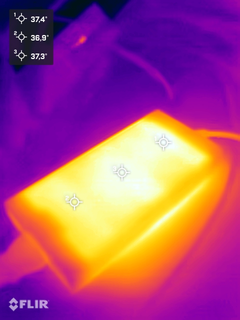 (+) Bij onbelast gebruik bedraagt de gemiddelde temperatuur voor de bovenzijde 26 °C / 79 F, vergeleken met het apparaatgemiddelde van 29.5 °C / 85 F.