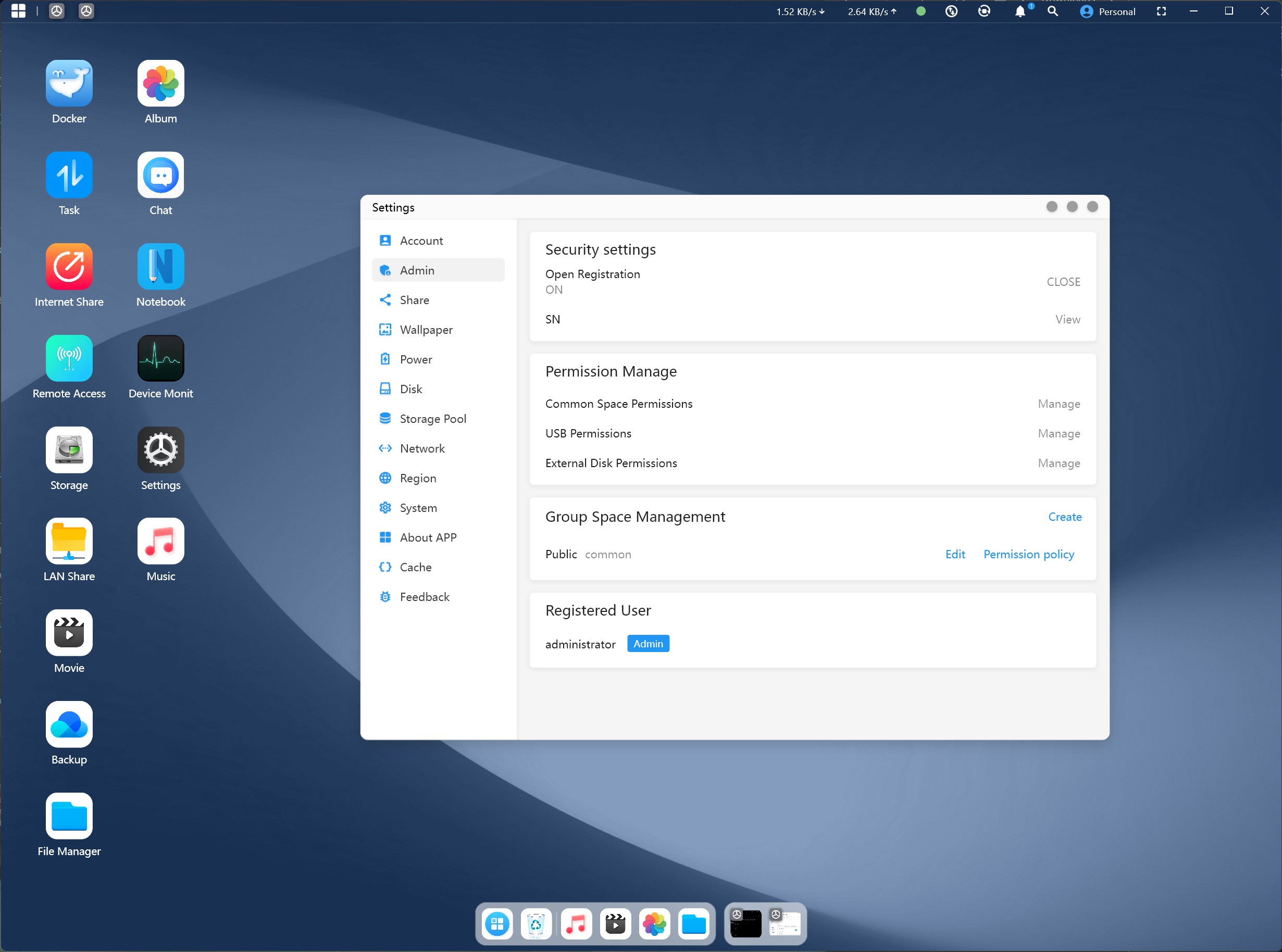 Minisforum levert een uitgebreide selectie accessoires. Hiertoe behoren een adapterkaart voor het installeren van U.2 SSD's, een krachtige voeding van 280 watt en de benodigde aansluitkabels om het apparaat direct te kunnen gebruiken. Minisforum levert ook een speciaal ontwikkeld besturingssysteem, het MinisCloud OS. Deze aanpak is goed voor het integreren van de NAS in uw netwerk. Sommige programma's zijn al voorgeïnstalleerd, en met de optie om Docker-containers te integreren, staan bijna alle mogelijkheden open.