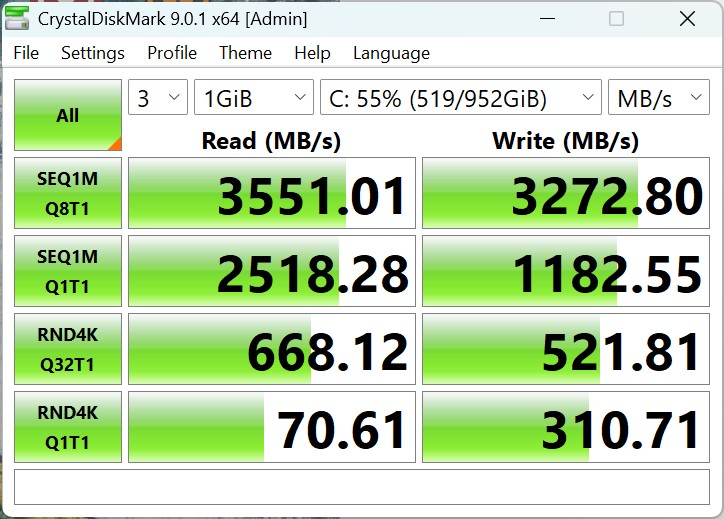 Connectivity - USB 3.x / USB4 / TB - AS SSD Seq Read Test (1GB) | |