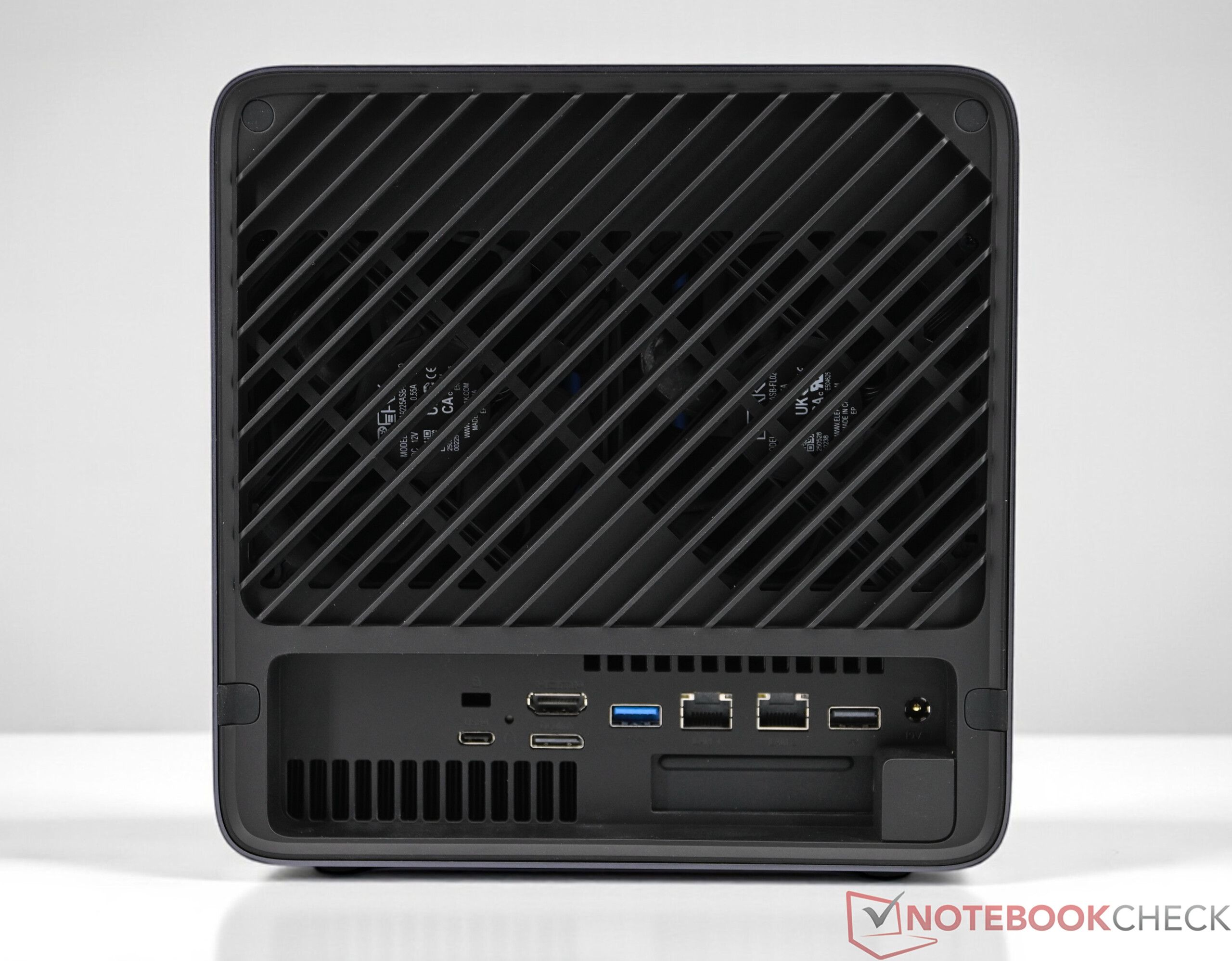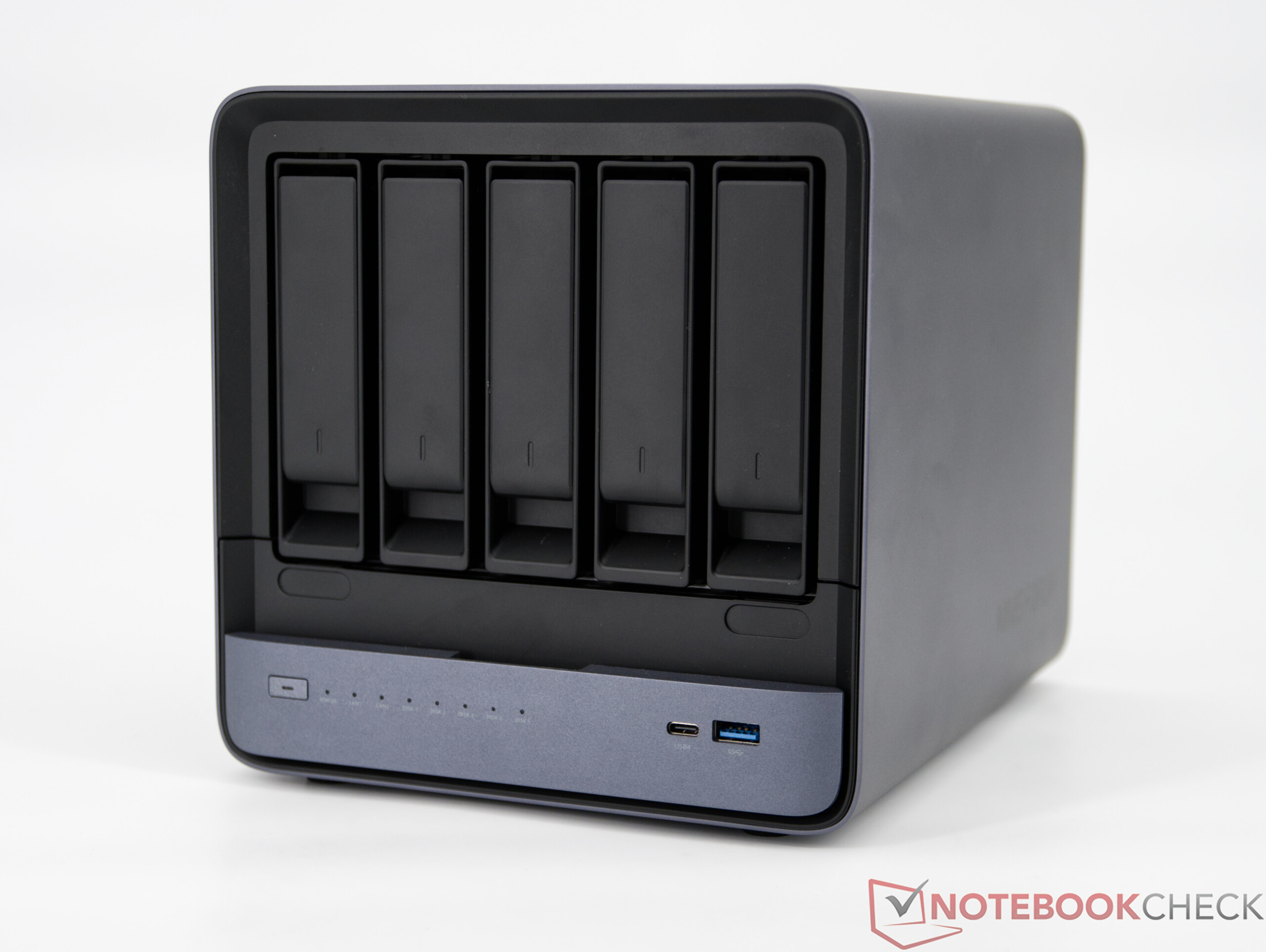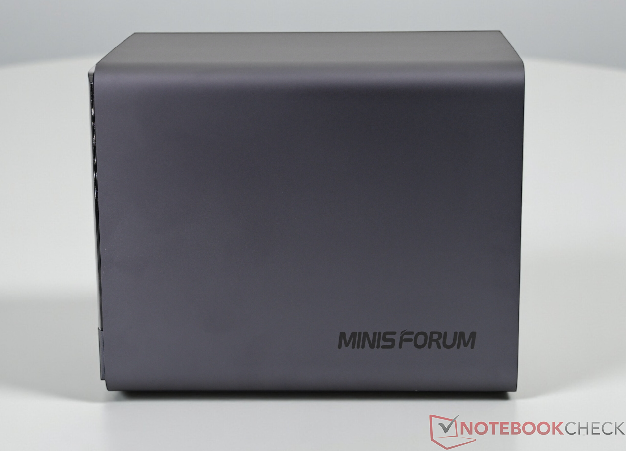 De Minisforum N5 Pro is grotendeels gemaakt van metaal, aangevuld met een paar plastic elementen die zowel visueel als bij aanraking een zeer hoogwaardige indruk maken. Een klein puntje van kritiek betreft het glanzende voorpaneel, dat gevoelig is voor vingerafdrukken en na verloop van tijd zijn uiterlijk kan verliezen door fijne krasjes. Qua functies heeft de Minisforum N5 Pro niets te verbergen. In totaal kunnen er vijf 3,5" HDD's en drie SSD's in de NAS worden geplaatst. Dankzij de vele externe interfaces biedt de NAS een groot aantal uitbreidings- en verbindingsmogelijkheden. De netwerkaansluiting is bijzonder succesvol, met twee snelle LAN-poorten (1 × 10 Gbit, 1 × 5 Gbit) die een uitzonderlijk hoge gegevensoverdrachtsnelheid en betrouwbaarheid mogelijk maken. We willen ook de OCuLink-aansluiting en de interne PCIe x16-sleuf noemen, waardoor het systeem bijvoorbeeld kan worden uitgerust met speciale grafische kaarten.
