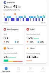 De smartwatch analyseert onafhankelijk de hartslag, de zuurstofverzadiging in het bloed en het effect van stress (via hartslagvariabiliteit), maar meet alleen het omgevingsgeluid via de geïntegreerde microfoon als de Tic noise-app is geopend