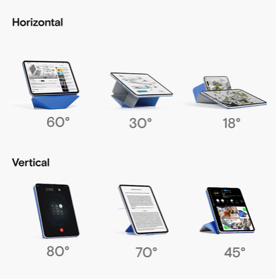 De Dynamic Folio is gemaakt van MOVAS-P veganistisch leer en is verkrijgbaar in twee kleuren: Jet Black en Cement x Sapphire (grijs aan de ene kant en lichtblauw aan de andere). Het is compatibel met een groot aantal apparaten, waaronder iPad 10, iPad 11, iPad Air 4, iPad Air 5, iPad Air M2 (zowel 11" als 13"), iPad Air M3 (zowel 11" als 13"), iPad Pro 11 vanaf de 2e generatie, iPad Pro 13 vanaf de 4e generatie, iPad Mini 6 en iPad Mini 7.