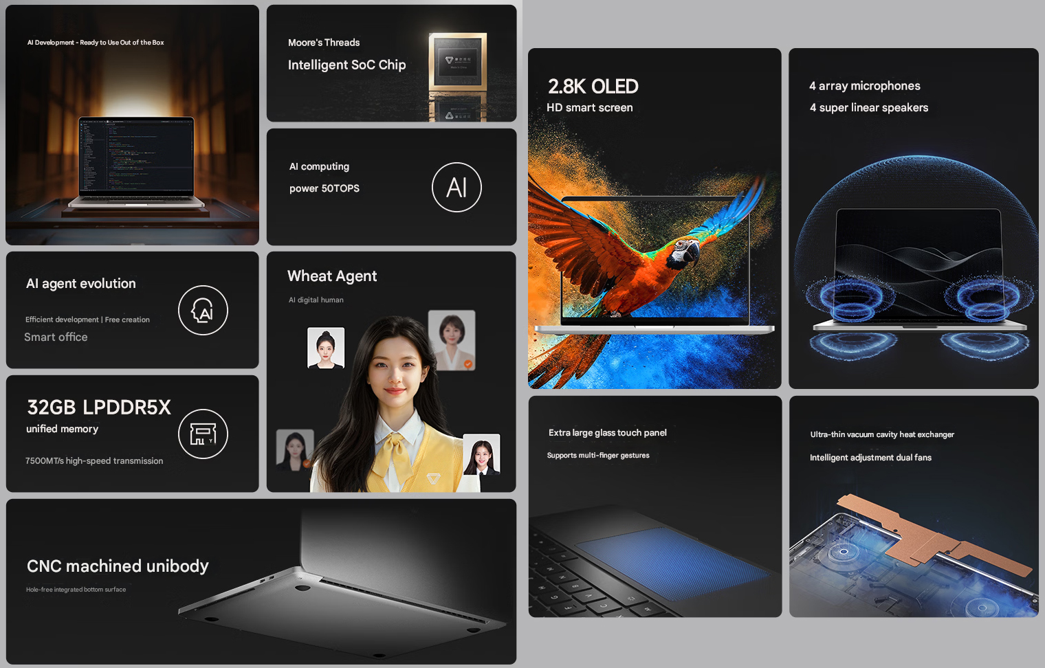 Moore Threads heeft een nieuwe hoogwaardige laptop geïntroduceerd, de MTT AIBook. Deze wordt aangedreven door wat het merk beweert een in China gemaakte SoC te zijn, die bestaat uit een CPU, NPU en GPU.
