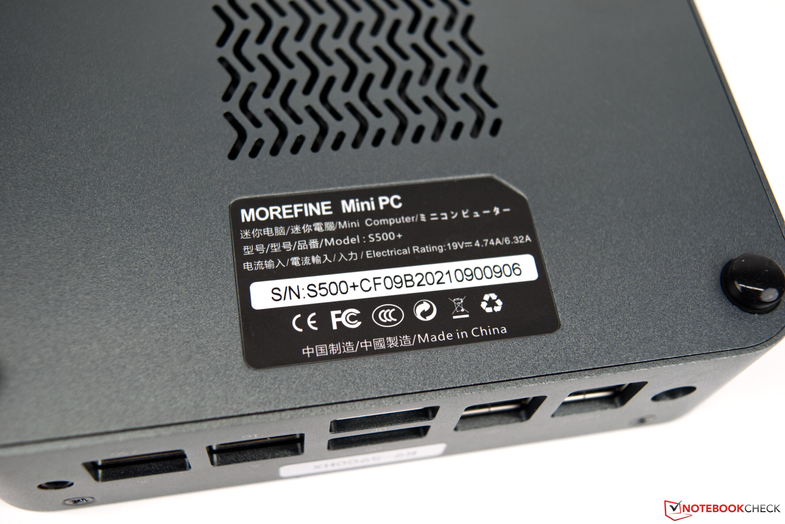 In tegenstelling tot Minisforum heeft Morefine de hardware ondergebracht in een aluminium behuizing, die er stevig uitziet en een zeer hoogwaardige uitstraling heeft. Het oppervlak is echter versierd met een plastic laag, die doet denken aan pianolak na het verwijderen van de beschermfolie. Vanwege de nadelige eigenschappen (microkrasjes), zijn we niet bijzonder dol op deze afwerkingen. Toch lijkt de fabrikant zijn huiswerk hier zeer goed te hebben gedaan. Zelfs na enkele dagen intensief gebruik, hebben we nog geen microkrasjes kunnen ontdekken. Deze verschijnen vaak onmiddellijk na het verwijderen van de beschermfolie. Deze krasjes worden nog sneller merkbaar wanneer het toestel ook vaak van stof wordt ontdaan.
