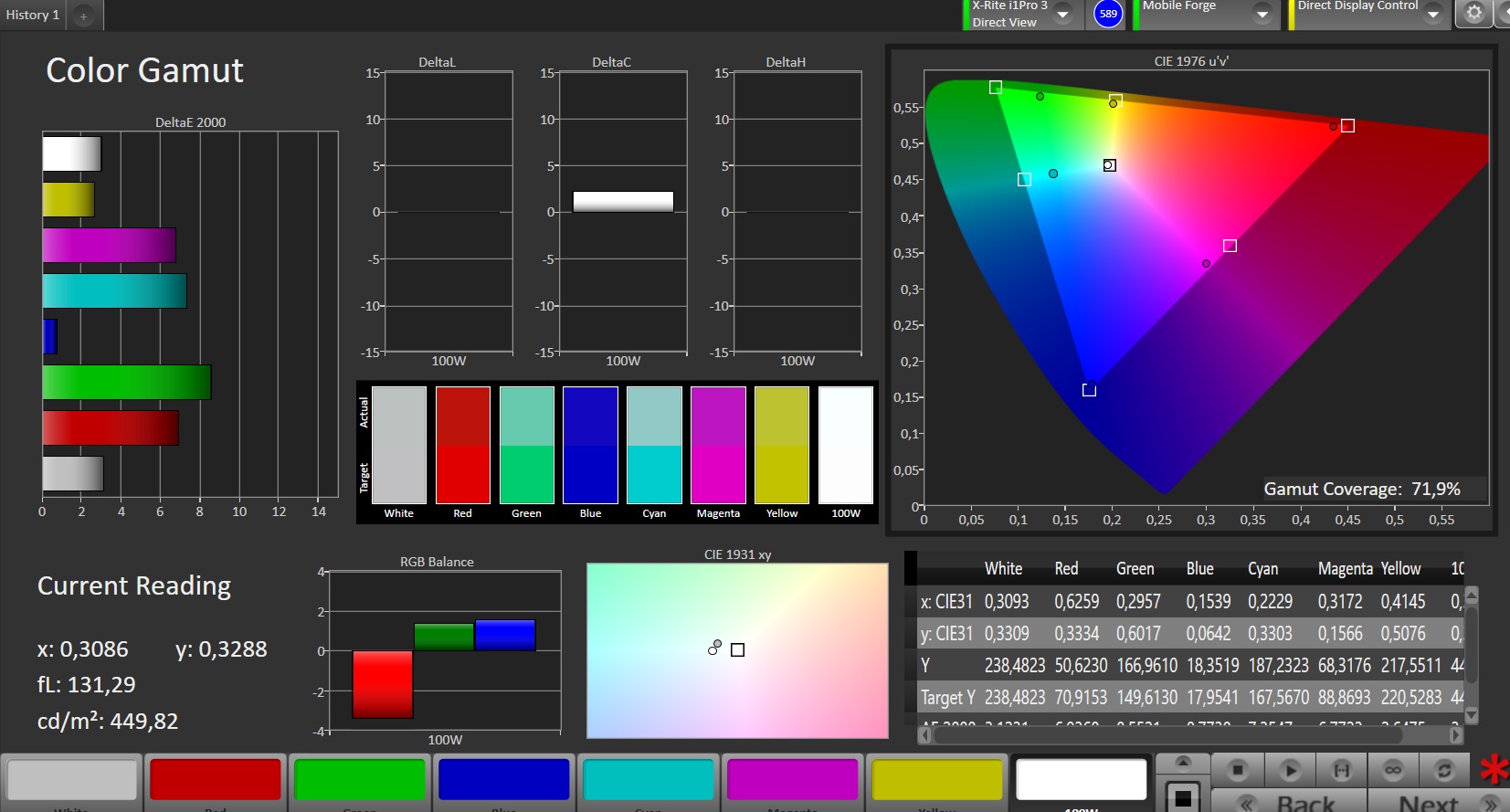 Helderheid in Batterij-modus: 632 cd/m²