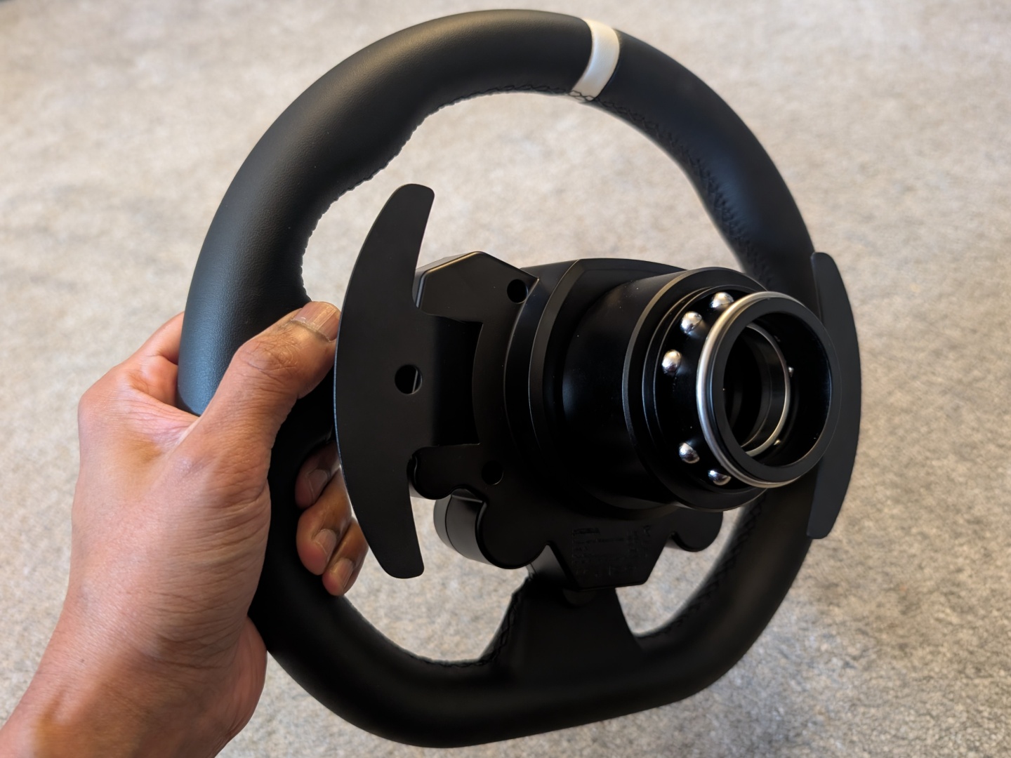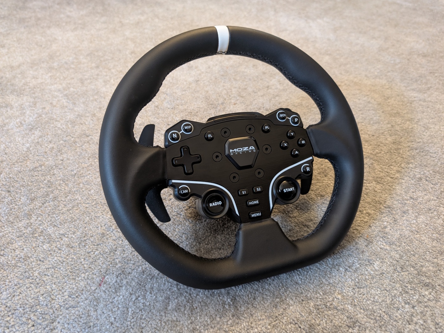 Het ES-stuurwiel is een 11-inch stuur met een frame van aluminiumlegering en microvezelleder. Er zitten 22 knoppen op het stuur en twee peddels aan de achterkant. Helaas zijn dit mechanische, veerbelaste peddels en geen magnetische, wat ook het geval is bij de R5 bundel. Het stuur heeft wel een LED array voor de toerenteller.