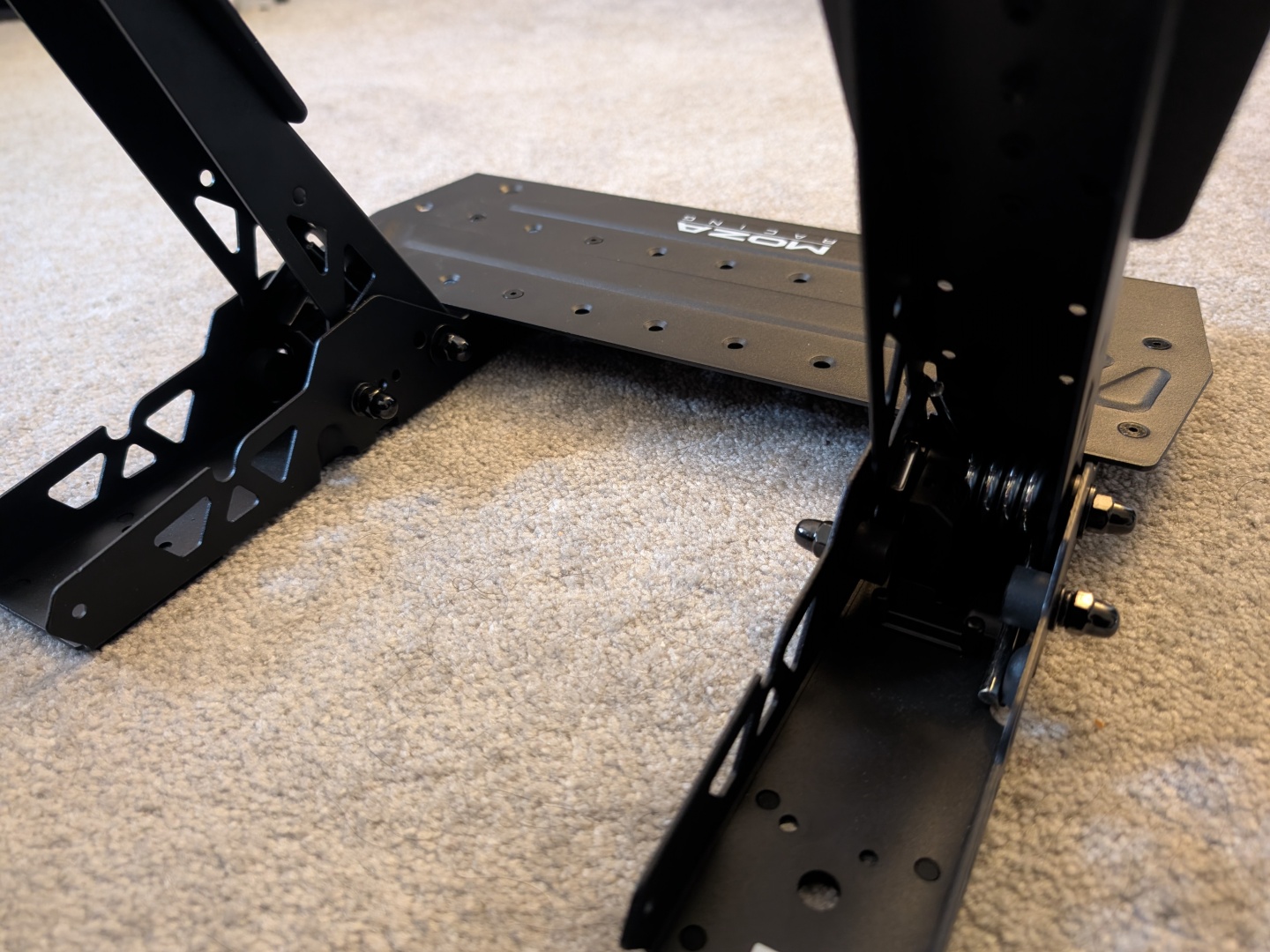 Tot slot bevat het pedaalsysteem een gashendel en rem met ruimte voor een koppelingsbevestiging (apart verkrijgbaar). Ze zijn verstelbaar in de zin dat ze dichter of verder weg bewogen kunnen worden, en ook losgemaakt kunnen worden voor individuele montage in een installatie, maar ze zijn verend met Hall-sensoren. Meer hierover in het gedeelte over de prestaties. Er zitten rubberen kussentjes op de onderkant om uitglijden op tapijt of houten vloeren te voorkomen en de algehele bouwkwaliteit is solide.