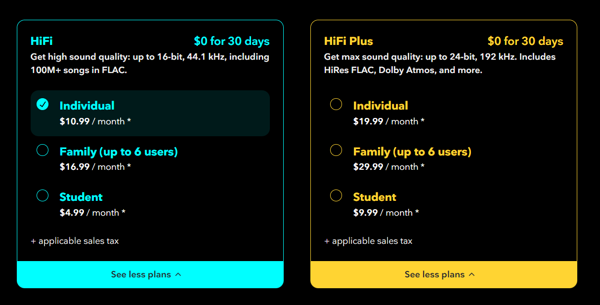 Vanaf 10 april betalen abonnees van het voorheen duurste abonnement 45% minder dan voorheen, terwijl alle abonnees toegang krijgen tot de hoogste Tidal-kwaliteit in 24-bit bij 192 kHz. High-res FLAC, MQA, Dolby Atmos en Sony 360 Reality Audio zijn nu ook beschikbaar in het reguliere abonnement, naast de gebruikelijke meer dan 100 miljoen nummers, meer dan 650.000 muziekvideo's, afspeellijsten van experts en volledige vrijwaring van advertenties. Het 'Familie'-abonnement, dat door maximaal zes personen gebruikt kan worden voor $16,99 per maand, en het studentenabonnement van $4,99 bieden ook toegang tot de hoogste Tidal-kwaliteit.