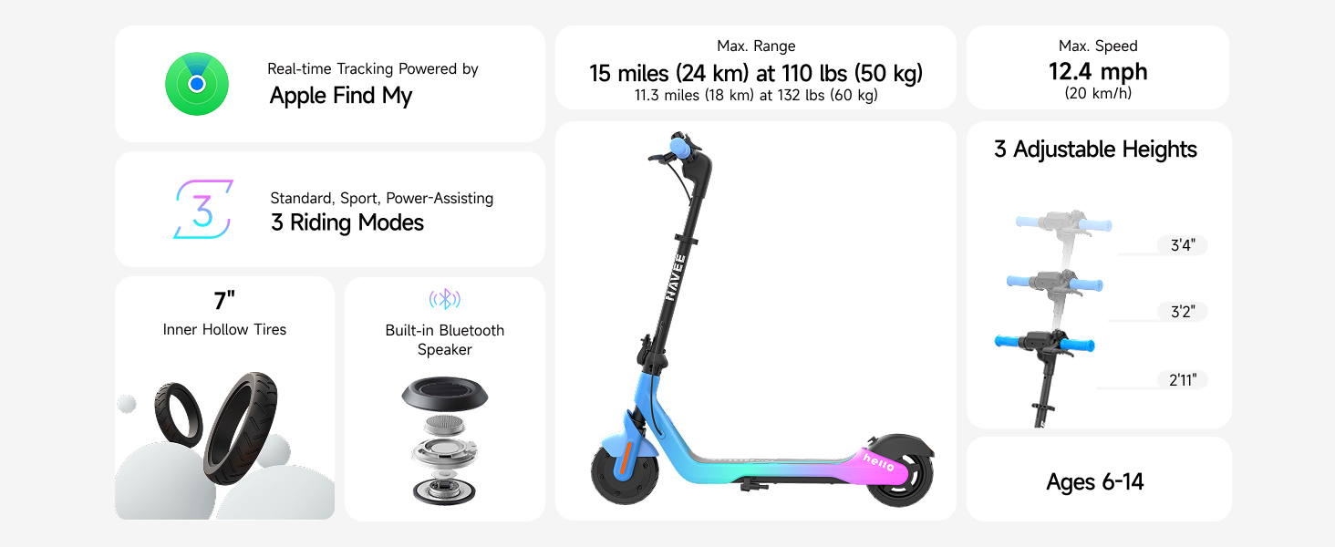 Navee heeft zijn allereerste elektrische kinderscooter, de K100-serie, wereldwijd gelanceerd. De e-scooterbouwer heeft drie varianten in de K100-serie geïntroduceerd, waaronder de K100, de K100 Pro en de K100 Max. Alle drie de modellen zijn speciaal ontworpen voor rijders van 6 tot 14 jaar. Over functies gesproken: de basis- en middenvarianten hebben vrijwel dezelfde functies. De topvariant biedt echter een hoog vermogen en een maximale actieradius. Qua afmetingen hebben alle drie de modellen echter dezelfde afmetingen.