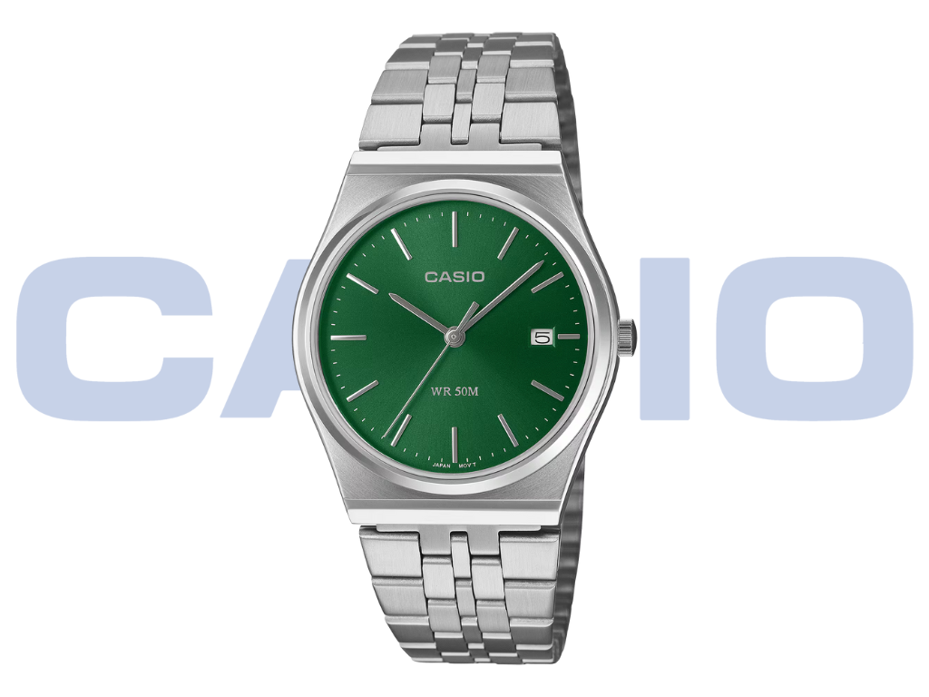 Casio heeft zijn nieuwe MTPB145DC-3AV roestvrijstalen horloge uitgebracht, met een vintage stijl uit de jaren 1980. Dit horloge kost $110 in de VS en is een echte throwback. Het combineert een minimalistische groene wijzerplaat met een klassieke kast en stalen band.