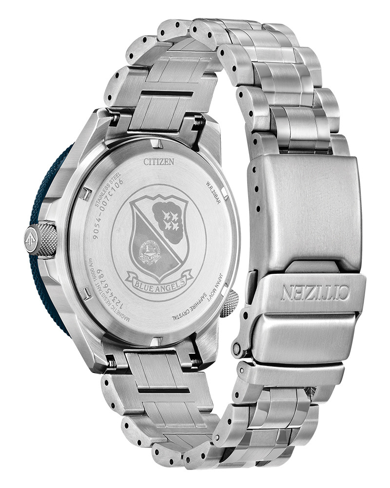 Het ontwerp is gebaseerd op de lange relatie van Citizen met het Blue Angels vluchtsquadron van de Amerikaanse marine, en dit thema is de afgelopen jaren op vele Eco-Drive en mechanische releases terug te vinden geweest. Deze nieuwe referentie lijkt een meer premium en mechanisch gerichte editie te zijn in vergelijking met de meer gebruikelijke kwartsmodellen.