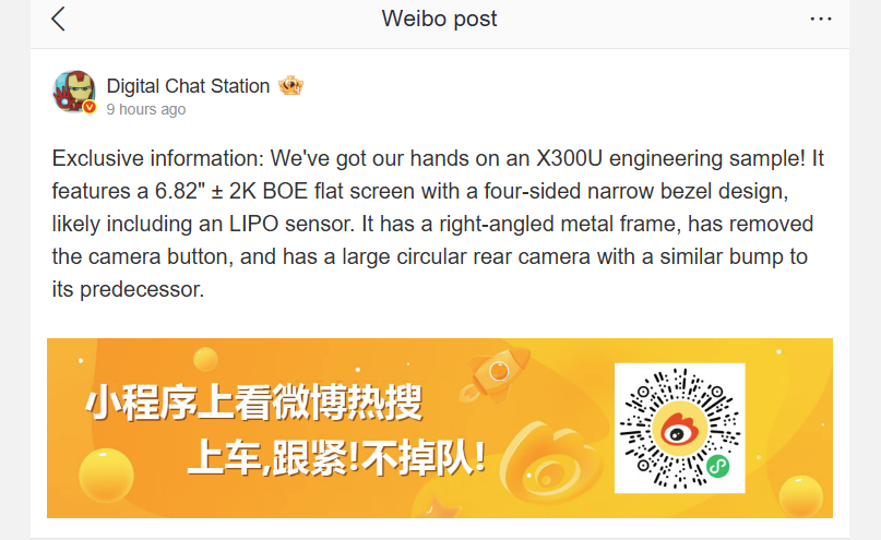 Het nieuwste lek is afkomstig van Digital Chat Stationdie beweert dat de vivo X300 Ultra een plat 6,82-inch BOE LTPO OLED-scherm met een 2K-resolutie zal gebruiken. Als dit klopt, zou dit een verschuiving betekenen ten opzichte van de gebogen panelen die gebruikt werden op de X200 Ultra.