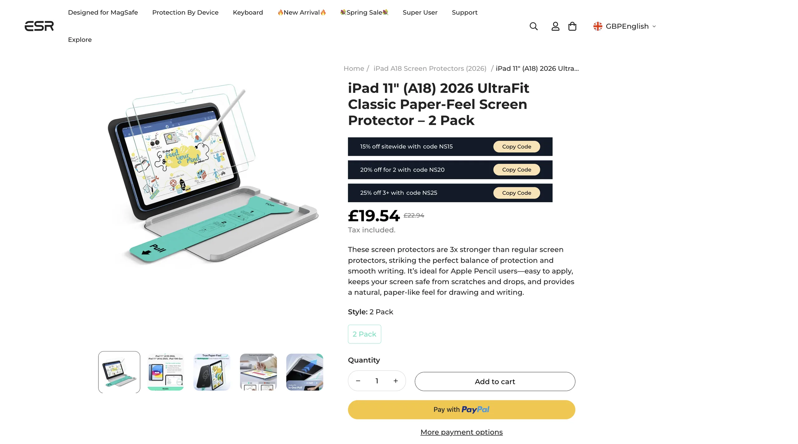 Volgens ESR Techkomt er ook bijna een vernieuwde instapmodel iPad aan. Hoewel er nog geen openbare aankondiging van Apple is, adverteert ESR Tech al met 'papierachtige' schermbeschermers voor de iPad 12e generatie. Hoewel ze op het moment van publicatie nog online stonden, hebben we hieronder afbeeldingen ingesloten voor wanneer ESR Tech zijn advertentie verwijdert.
