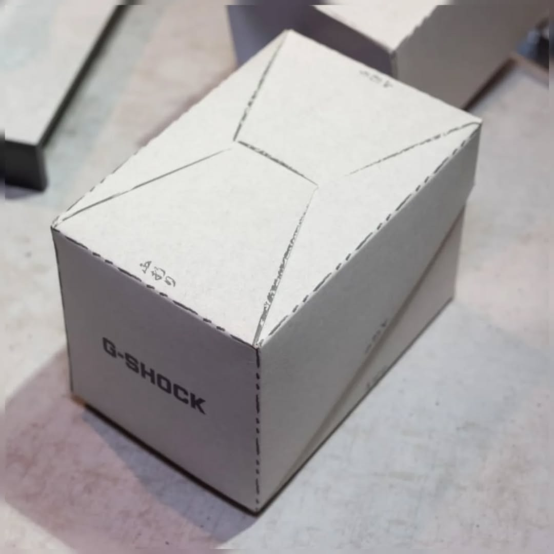 Op de DW-5600RGM-1 volgen gedrukte steeklijnen de randen van de kast en de bandsegmenten als snij- en vouwgeleiders, met gestippelde "perforatie"-tekeningen rond de lunette die er scherp uit zouden moeten zien onder het felle showlicht. De monochrome bedrukking vermijdt afloop aan de randen en houdt de verhoudingen van het vierkant intact, zodat het ontwerp vooral grafisch is. Aan de andere kant gooit de DW-6900RGM-5 het palet volledig om - witte hars wordt een basis voor grijs gestikte graphics die de gelaagde lunette en de drievoudige ooguitsnijdingen van de 6900 accentueren, en de uitlijning van de print over de bandhouders en lugs ziet er behoorlijk strak uit. De EL-achtergrondverlichting van beide modellen heeft een kraansilhouet, iets dat ook zichtbaar is op de achterkant van de kast en op de verpakking, wat de graphics aan de buitenkant verbindt met het "origami"-thema in plaats van het alleen als decoratie aan de oppervlakte te laten.