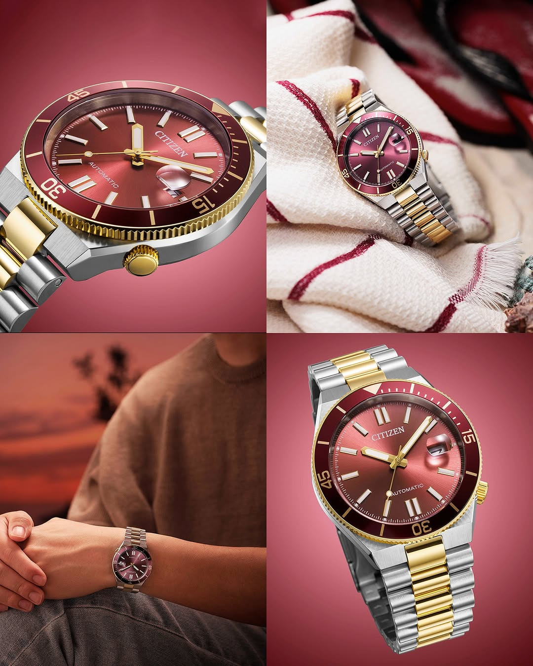 De nieuwe lancering lijkt de collectie te verwijderen van zijn puur "sportief-elegante" ontwerp naar een meer utilitaire "bureauduiker" esthetiek. Citizen heeft een veelgehoorde kritiek van consumenten over het gebrek aan tactiele bruikbaarheid in de standaard NJ015-lijn aangepakt door een draaibare lunette in te bouwen. Hierdoor neemt de dikte van de kast echter toe tot 12,5 mm, vergeleken met het slankere profiel van 11,7 mm van de vorige versies. De serie debuteert met vier referenties: de marineblauwe NJ0230-59L, blauwgroene NJ0231-56L, vergulde groene NJ0232-53X en een tweekleurige rode NJ0234-58X.