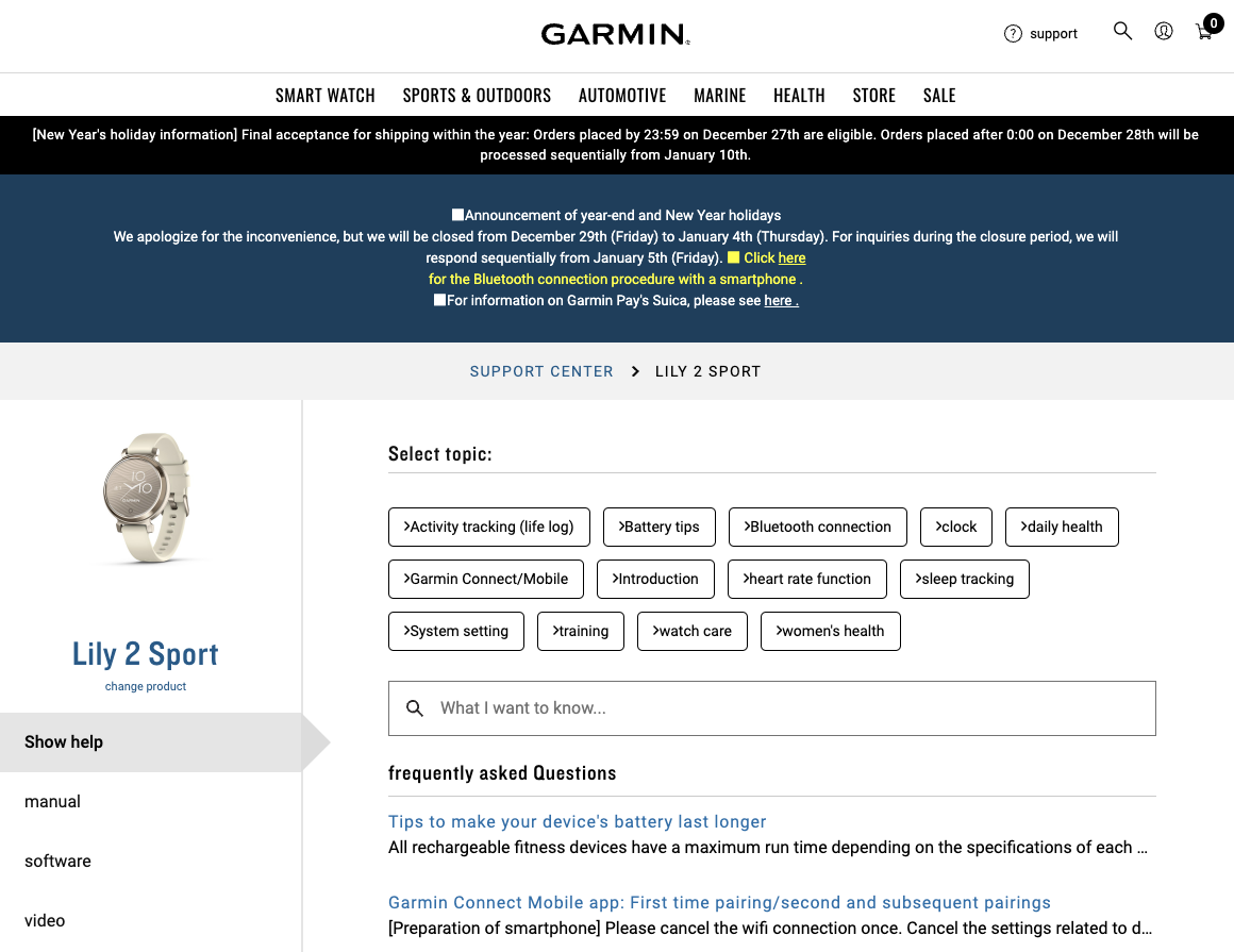 Een Redditor is gestuit op officiële documentatie voor een tweede generatie Garmin Lily hybride smartwatch. Verrassend genoeg heeft Garmin een 'Lily 2 Sport' productafbeelding op een Japanse ondersteuningspagina geplaatst, waarvan we hierboven en hieronder het bewijs hebben ingesloten. Ter referentie: de afbeelding blijft zichtbaar op de Wayback Machine mocht Garmin deze verwijderen.