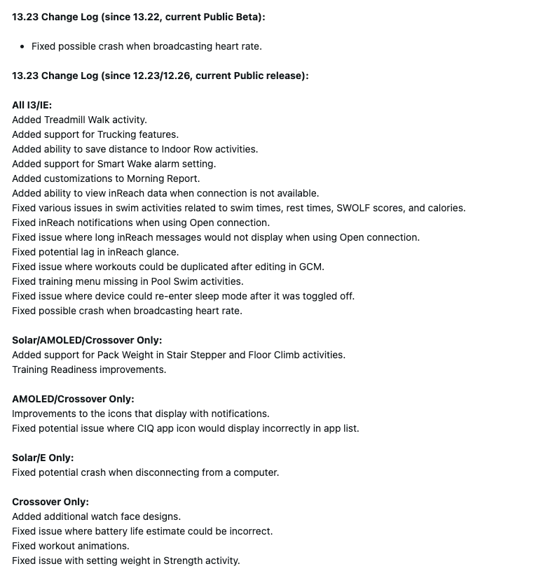 De release notes voor bètaversie 13.23 vermelden slechts één bugfix voor gebruikers van de Garmin Instinct 3 en gerelateerde wearables. Het bedrijf heeft een probleem opgelost dat te maken had met het vermogen van de smartwatch om hartslaggegevens uit te zenden. Zoals meldde in de speciale Beta Bugs-sectie van het Garmin Forumkon het horloge hierdoor onverwacht crashen.