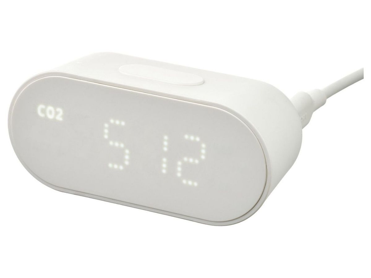 IKEA's Alpstuga sensor is ontworpen om gebruikers te helpen bij het bewaken van de luchtkwaliteit in een bepaalde kamer in hun huis. Op het pilvormige display kunt u metingen zien voor kooldioxide en PM2.5 deeltjesniveaus, evenals de huidige temperatuur. Als het apparaat niet in gebruik is, kan de tijd op het scherm worden weergegeven.