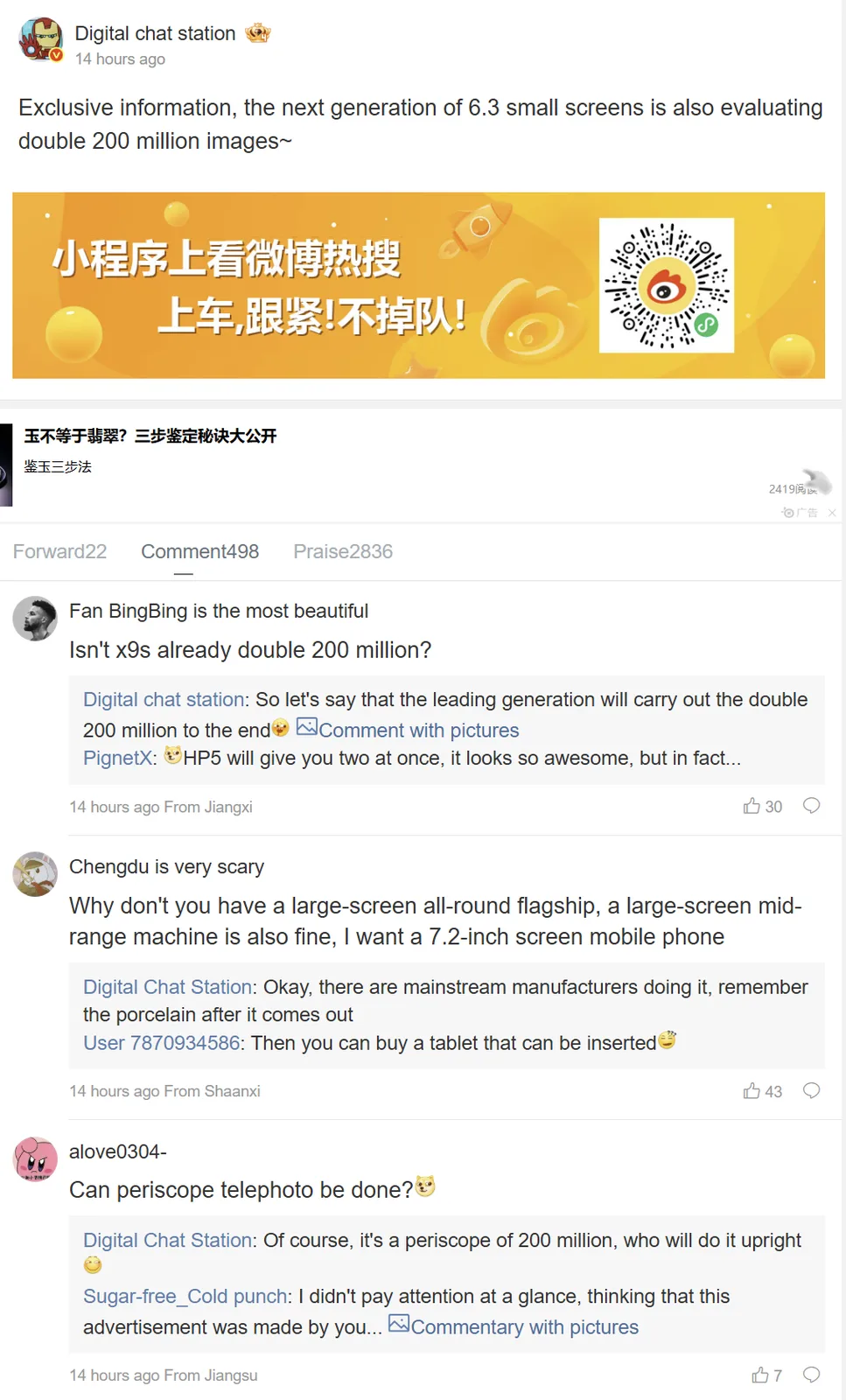 Op Weibo beweert de leaker exclusieve informatie te hebben ontvangen dat Xiaomi deze upgrade aan het "evalueren" is. Hierdoor is de kans groot dat toekomstige prototypes van de Xiaomi 18 en Xiaomi 18 Pro met andere camerasensoren vertrekken.