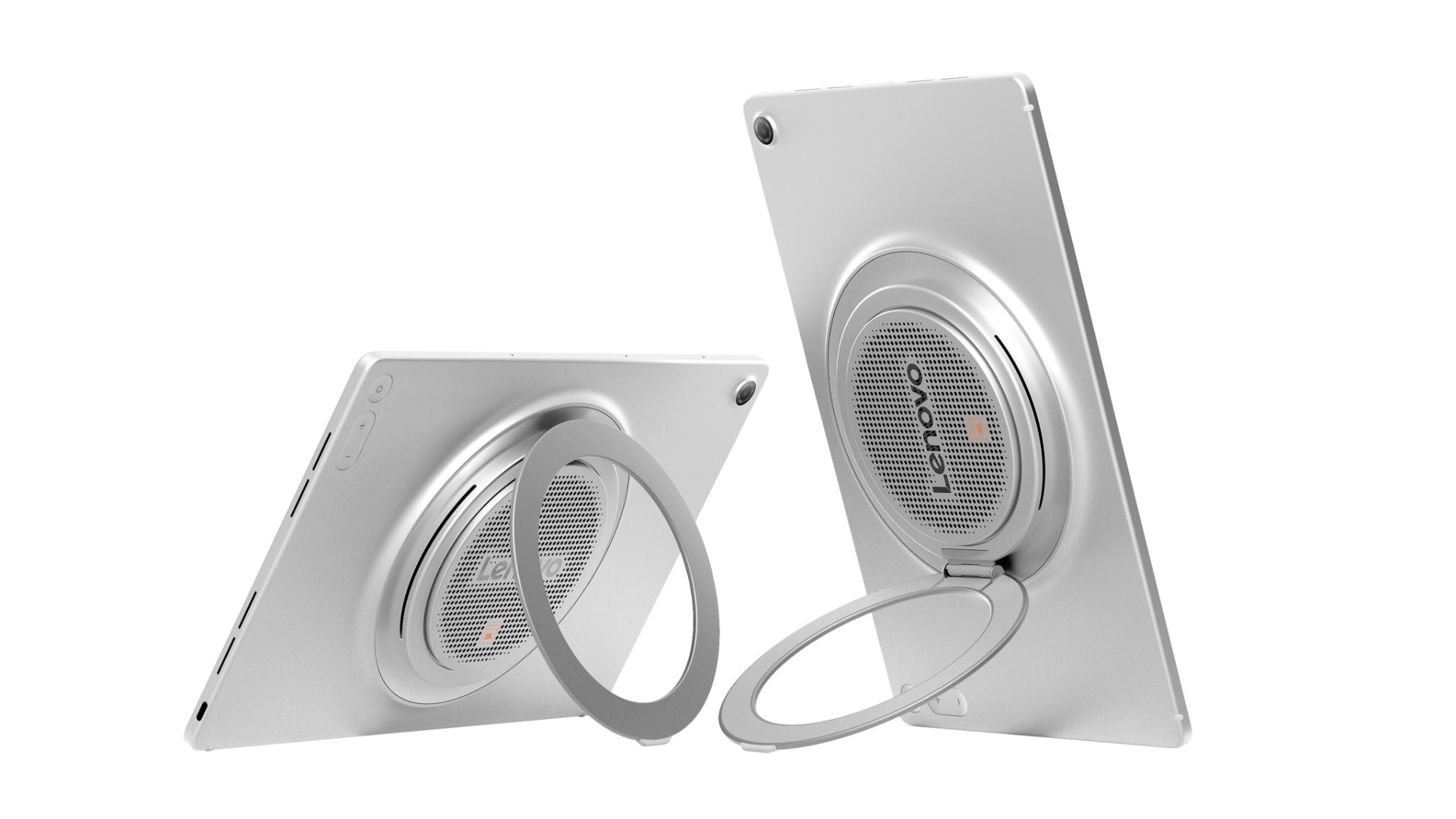 Het ronde gedeelte bevat voornamelijk een "JBL 9-unit PRO" luidsprekersysteem. Deze luidsprekers bevatten ook passieve radiatoren om de basrespons te maximaliseren. Bovendien heeft de tablet een ingebouwde standaard die zowel in staande als liggende modus gebruikt kan worden. De Tab Plus Gen 2 lijkt ook een actieve stylus te ondersteunen.