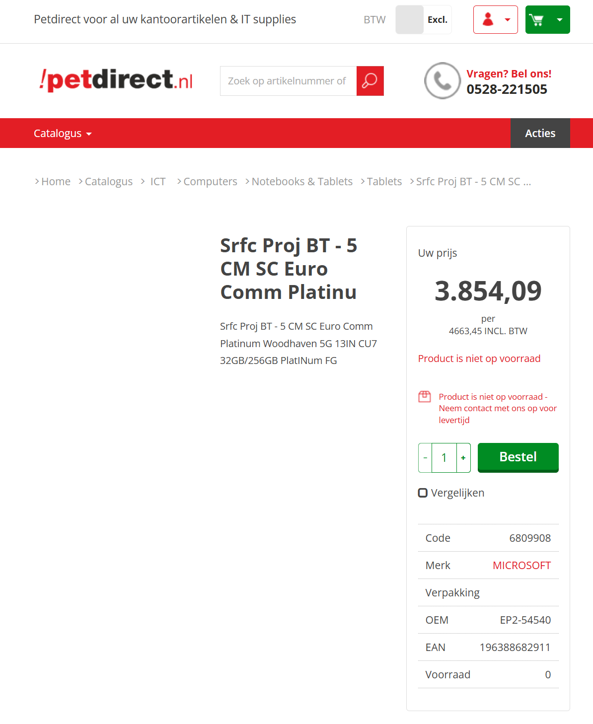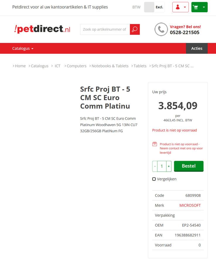 Nu lijkt het erop dat een van deze nieuwe Surface-apparaten is verschenen bij de Nederlandse verkoper Petdirect. Op het eerste gezicht is de aanbieding van Petdirect nogal onduidelijk. Quandt voegde er echter aan toe dat 'Woodhaven' Microsofts codenaam is voor de volgende Surface Pro 'for Business' release.