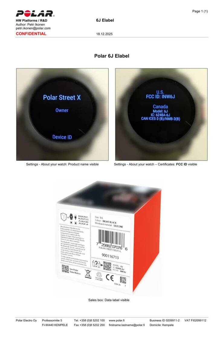 Op basis van de afbeelding hieronder lijkt de Street X op het ontwerp van de Vantage M die tegen het einde van 2024. Bovendien onthult de FCC dat Polar de Street X zal verkopen in een Night Black afwerking met een siliconen horlogeband. Het lijkt erop dat het bedrijf ook van plan is om een one-size-fits-all beleid te voeren, met S-L maten vermeld op een mockup van de retailverpakking. Helaas zijn de prijs en beschikbaarheid nog niet bekend. De verschijning van de smartwatch op de FCC geeft wel aan dat een wereldwijde release waarschijnlijk is.