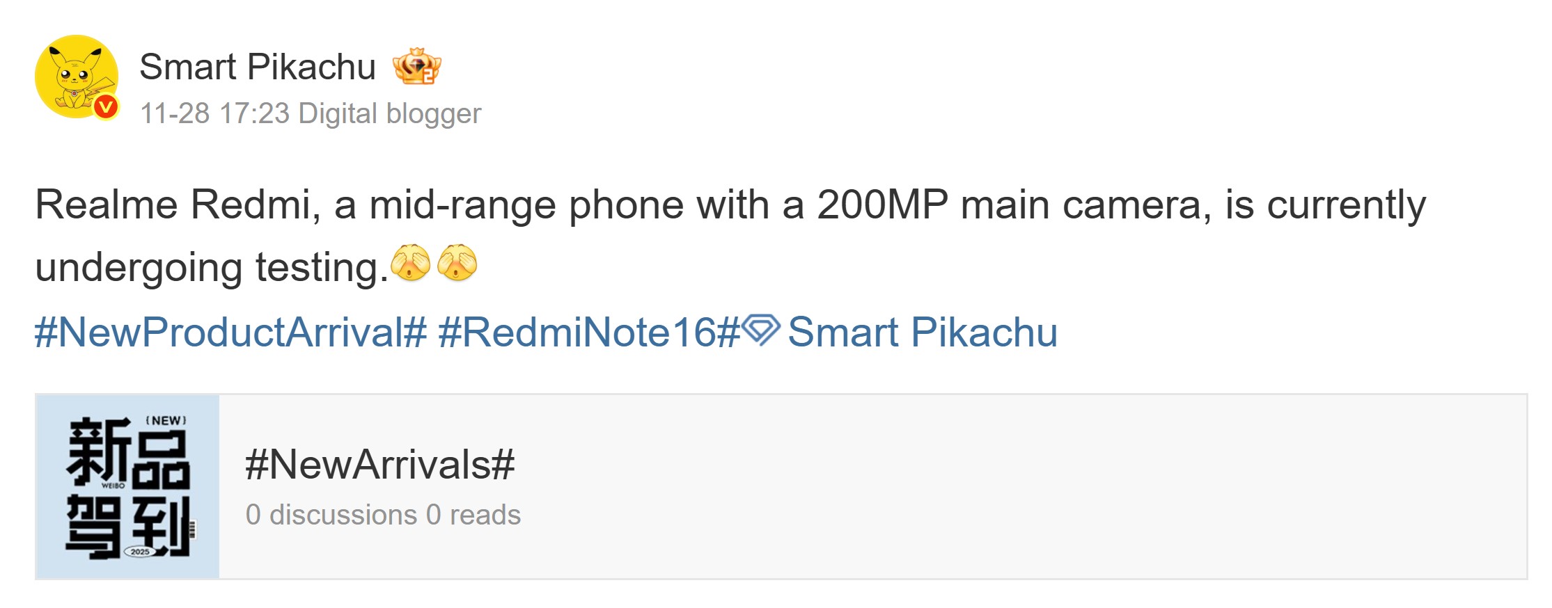 Terugkijkend heeft de Redmi Note 15 Pro+ een 50 MP primaire camera aan de achterkant, wat de Light Hunter 800 sensor is. De aankomende Note 16 Pro Plus zou volgens de laatste informatie van Smart Pikachu een 200 MP hoofdcamera aan de achterkant kunnen hebben.